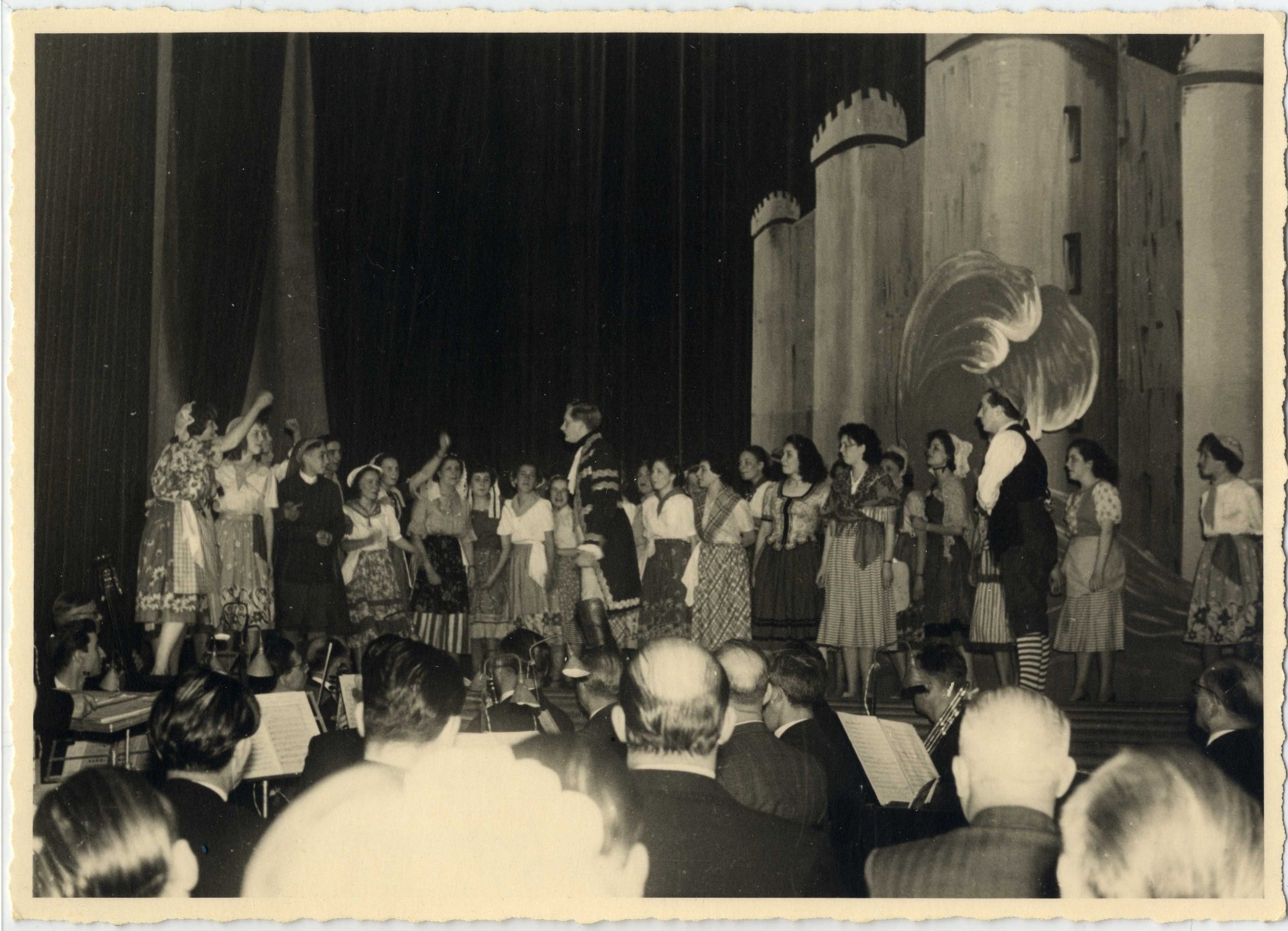 Photo Théâtre scolaire sur la scène du cinéma Crystal (Molenbeek-Saint-Jean), photogr. anon., 1950.