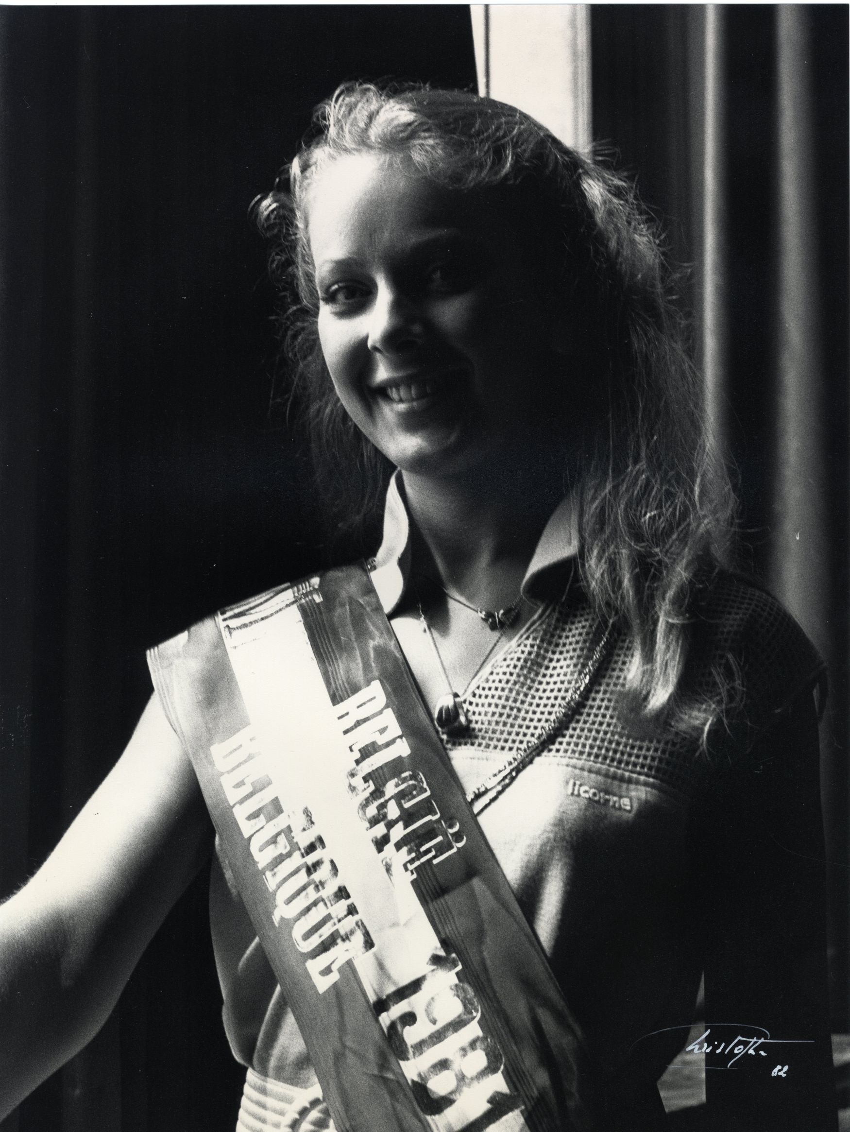 Photo Portrait Dominique Van Eeckhoudt en Miss Belgique 1981, photogr. Christophe Wallez (Molenbeek-Saint-Jean), 1982.