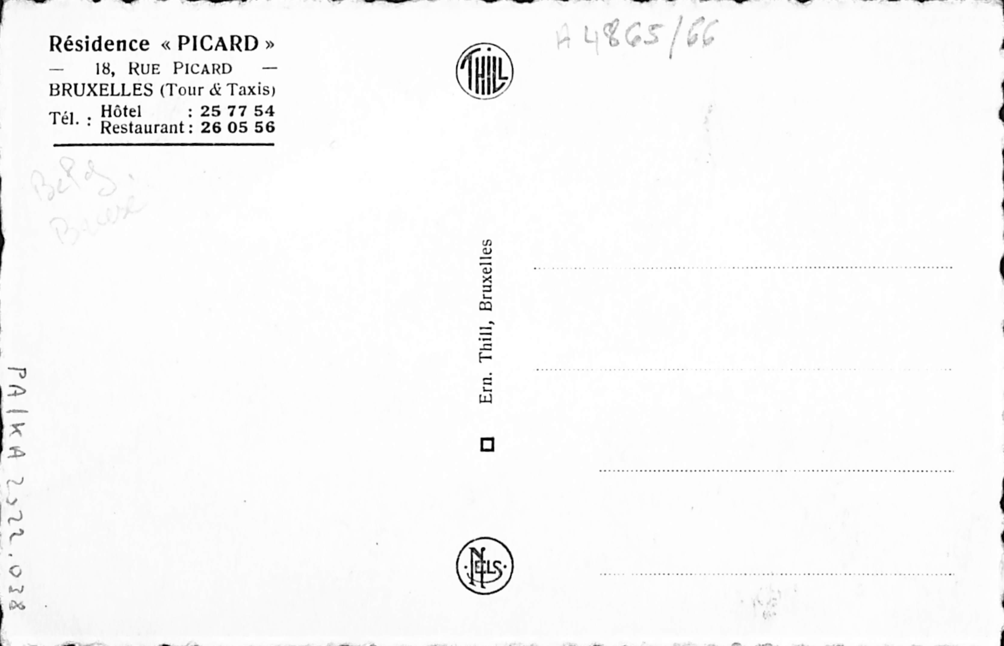 s.d. (L'enseigne "Résidence Picard" est mentionnée dans l'édition 1960 de l'Almanach du Commerce et de l'Industrie de Bruxelles.)