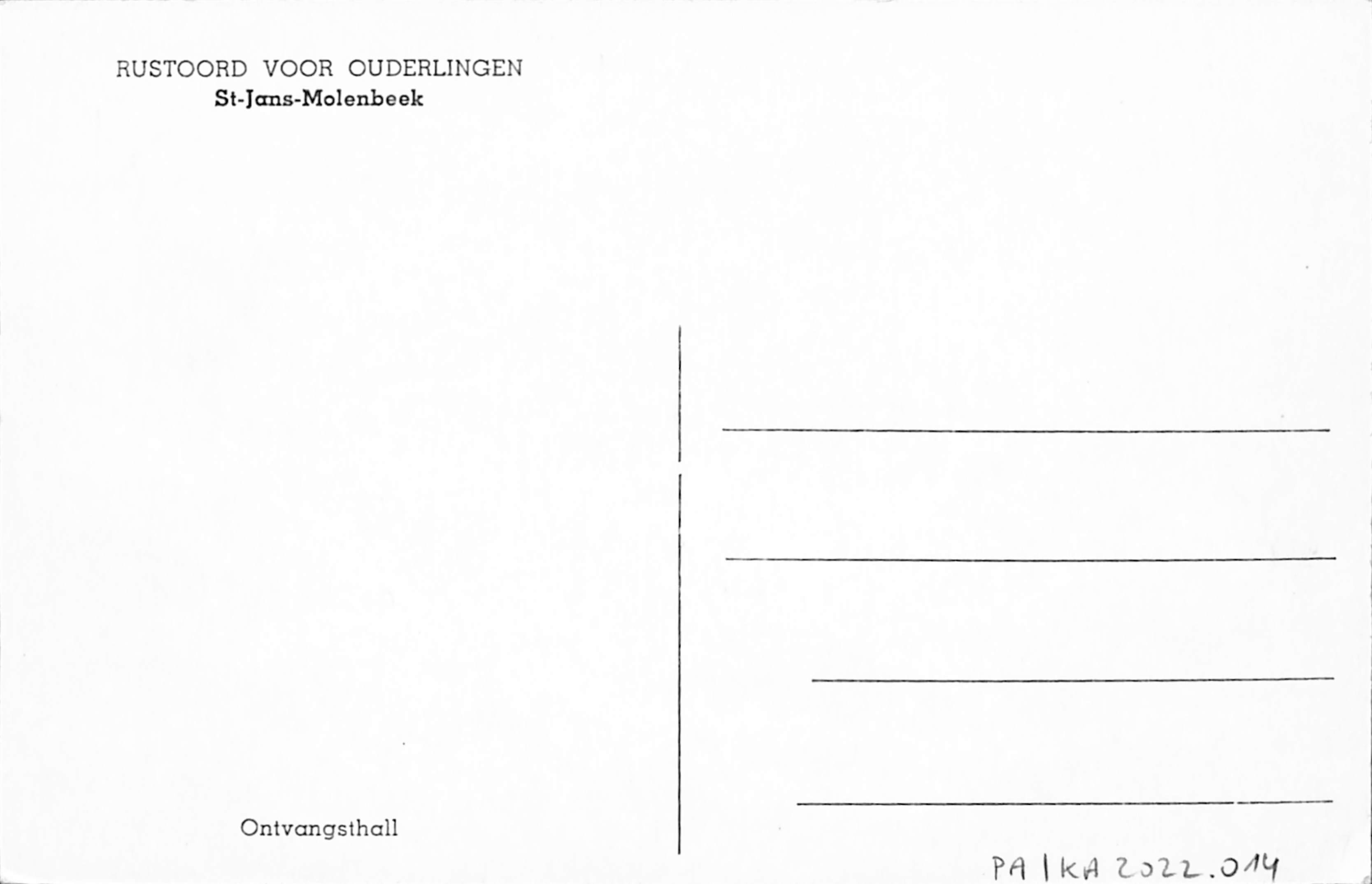 Carte-vue Maison de repos pour vieillards à Molenbeek-Saint-Jean [Home Arcadia]. Hall d'entrée, s.éd., s.d. [vers 1950].