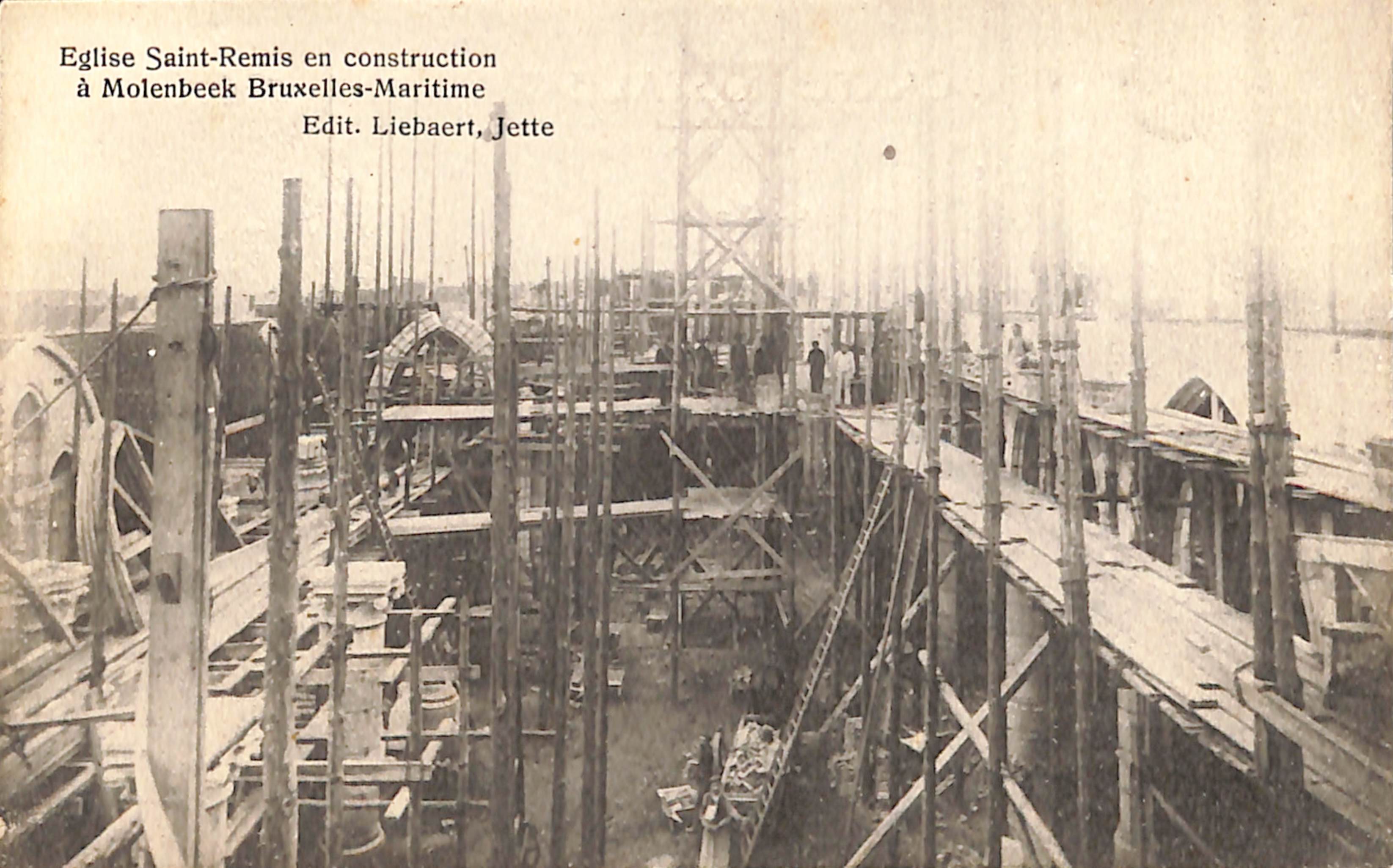 Carte-vue Eglise Saint-Remi en construction (Molenbeek-Saint-Jean), éd. Liebaert (Jette-Saint-Pierre), s.d. [vers 1910].