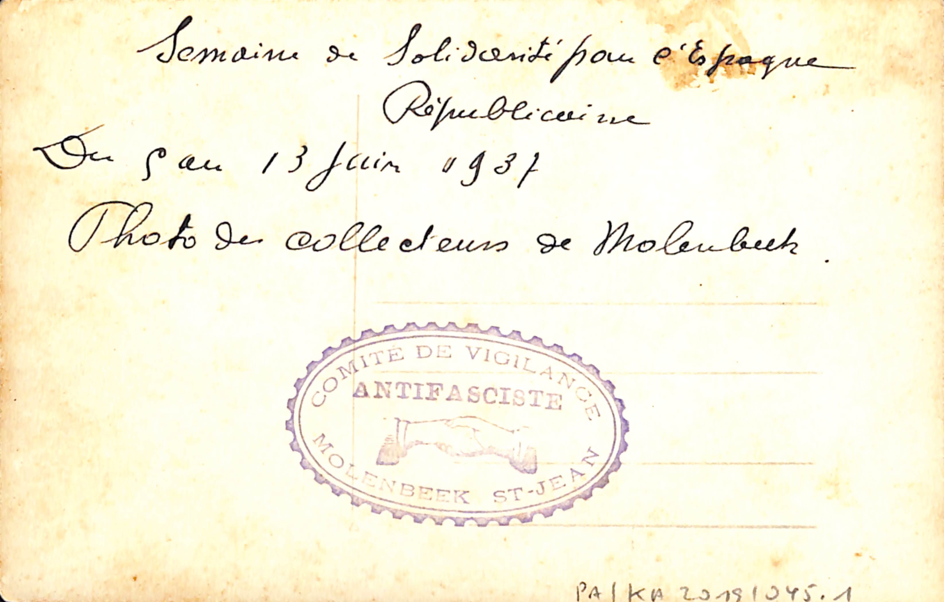 "Comité de vigilance antifasciste Molenbeek St-Jean" (cachet au verso)