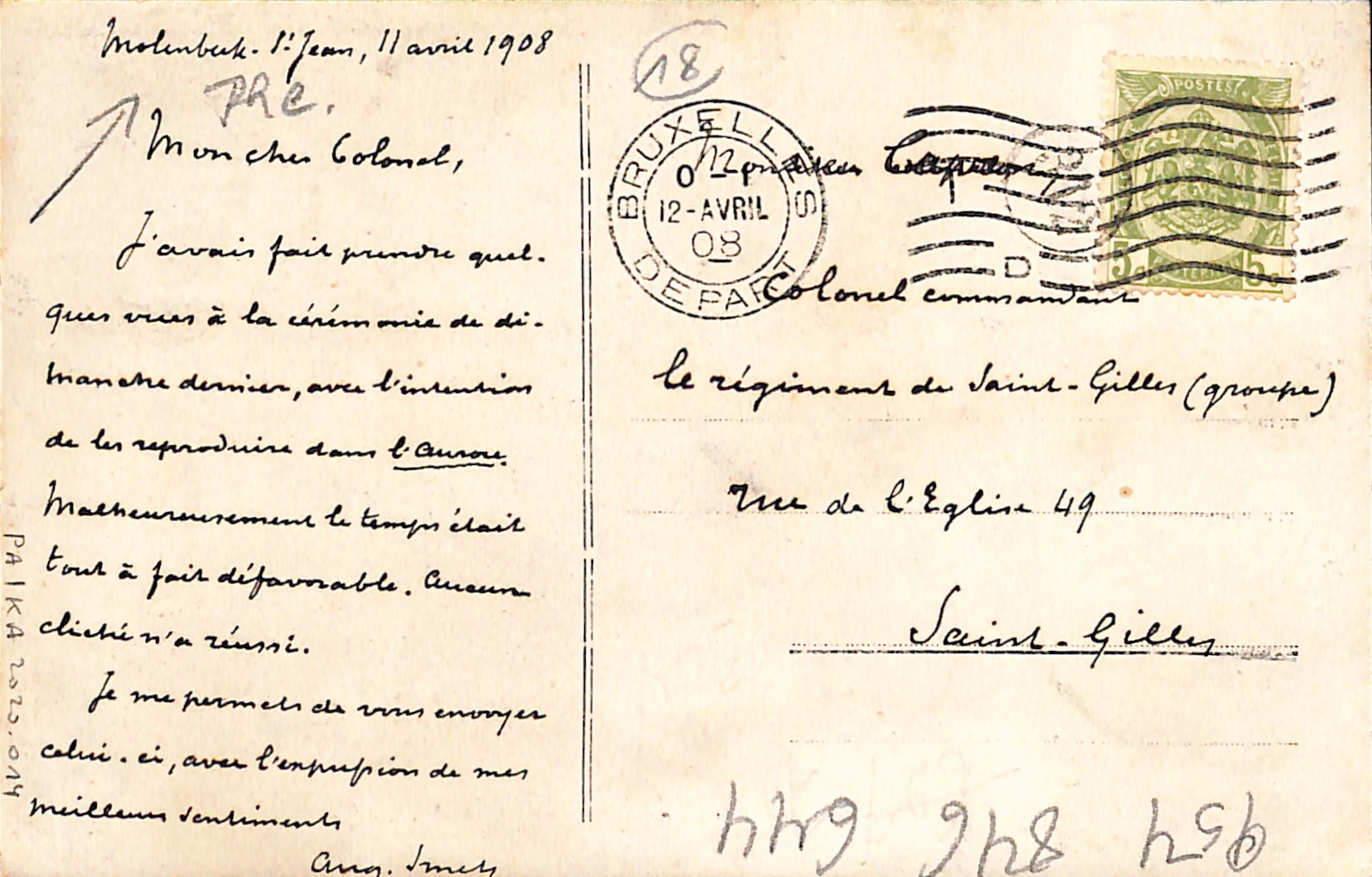 "Edmond Capron / Colonel Chef de la / Garde St Gilles Anderle[cht] / Molenbeek S[aint-Jean]"