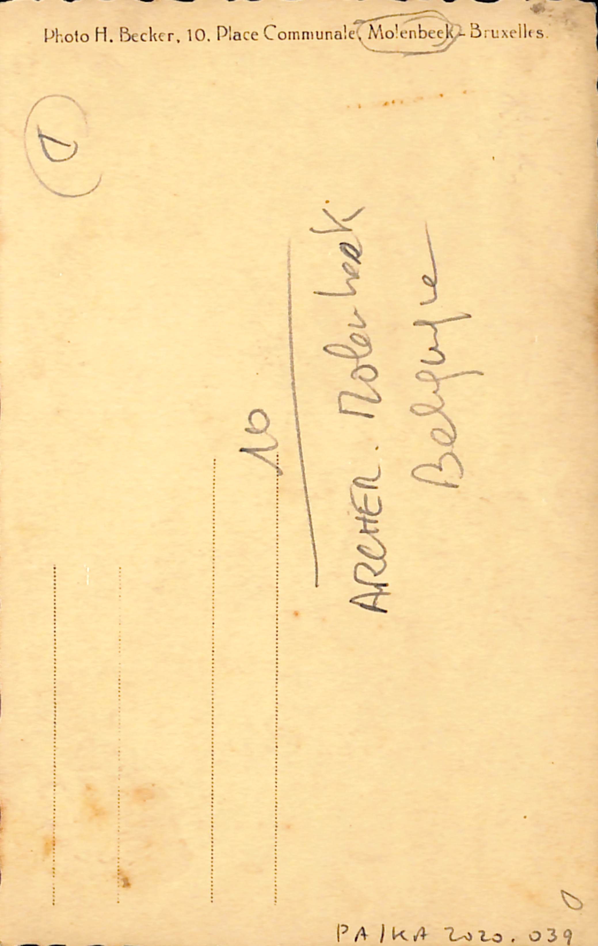 Carte photo Homme en tenue de roi des tireurs à l'arc, photogr. Henri Becker (Molenbeek-Saint-Jean), s.d.
