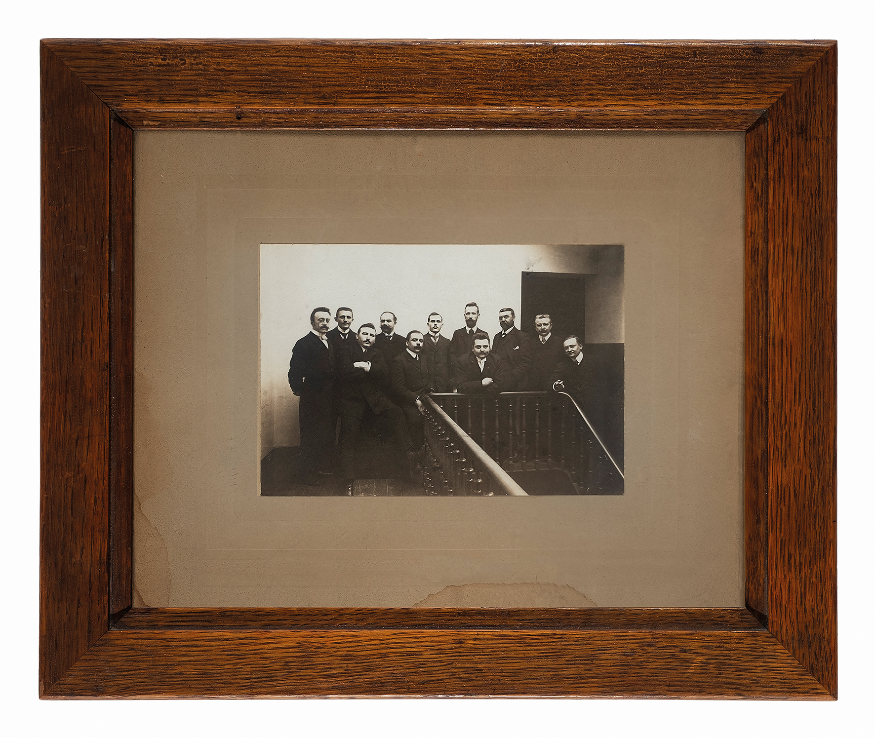 Photo Portait de groupe des employés du service des Travaux publics de la commune de Molenbeek-Saint-Jean (dont l'architecte adjoint Henri Nogent), photogr. anon., 1907.