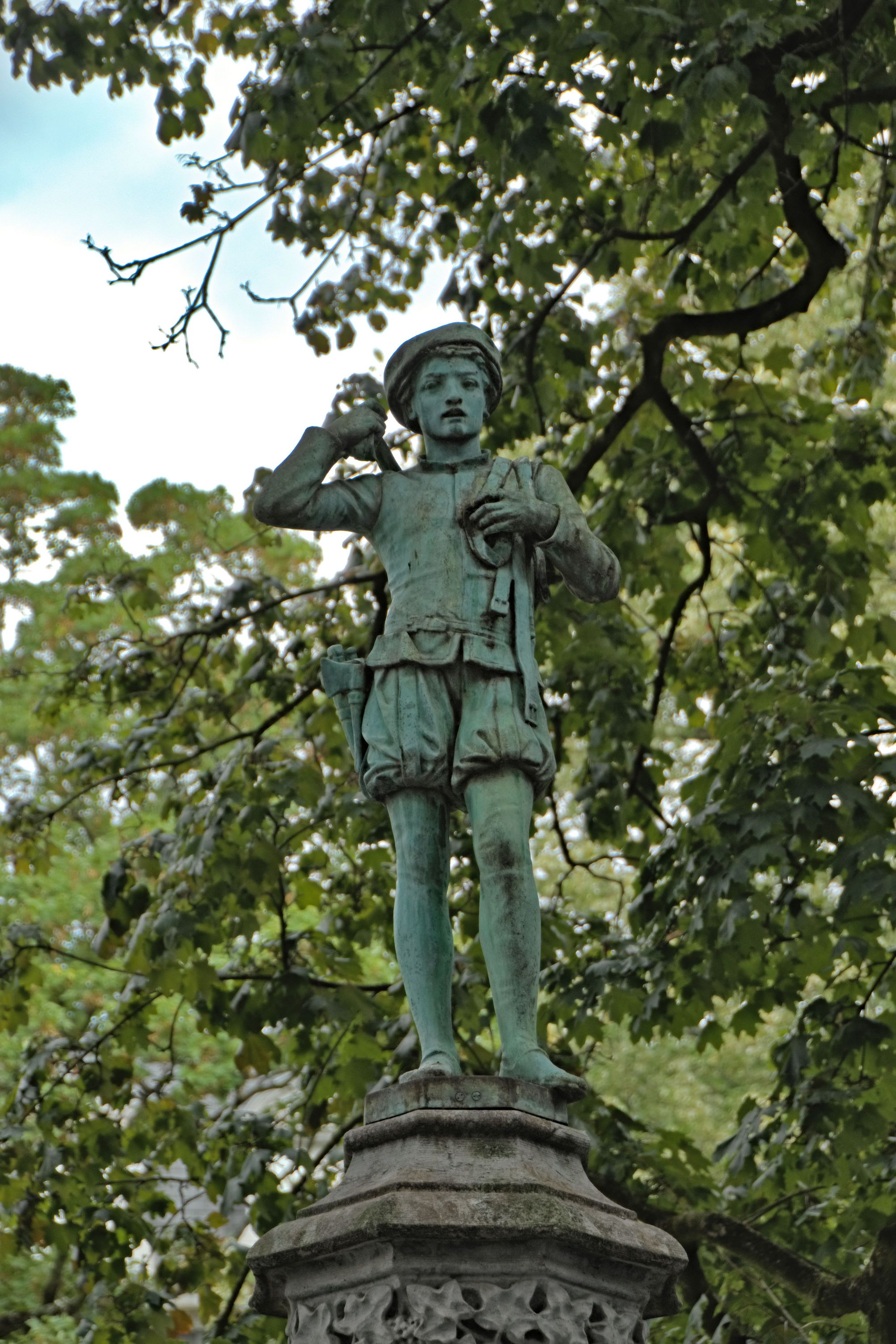 Cette statue a été réalisée par Antoine-Joseph Van Rasbourgh et fondue par la Compagnie des Bronzes. Sculpteur belge, Van Rasbourgh est notamment connu pour le buste de Pierre Paul Rubens (1577-1640) sur la façade des Musées royaux des Beaux-Arts de Belgique ainsi que pour la statue en marbre de Henri de Bréderode (1531-1568) au Petit Sablon. (PIRON, P., op.cit, Tome 2, p. 683.)