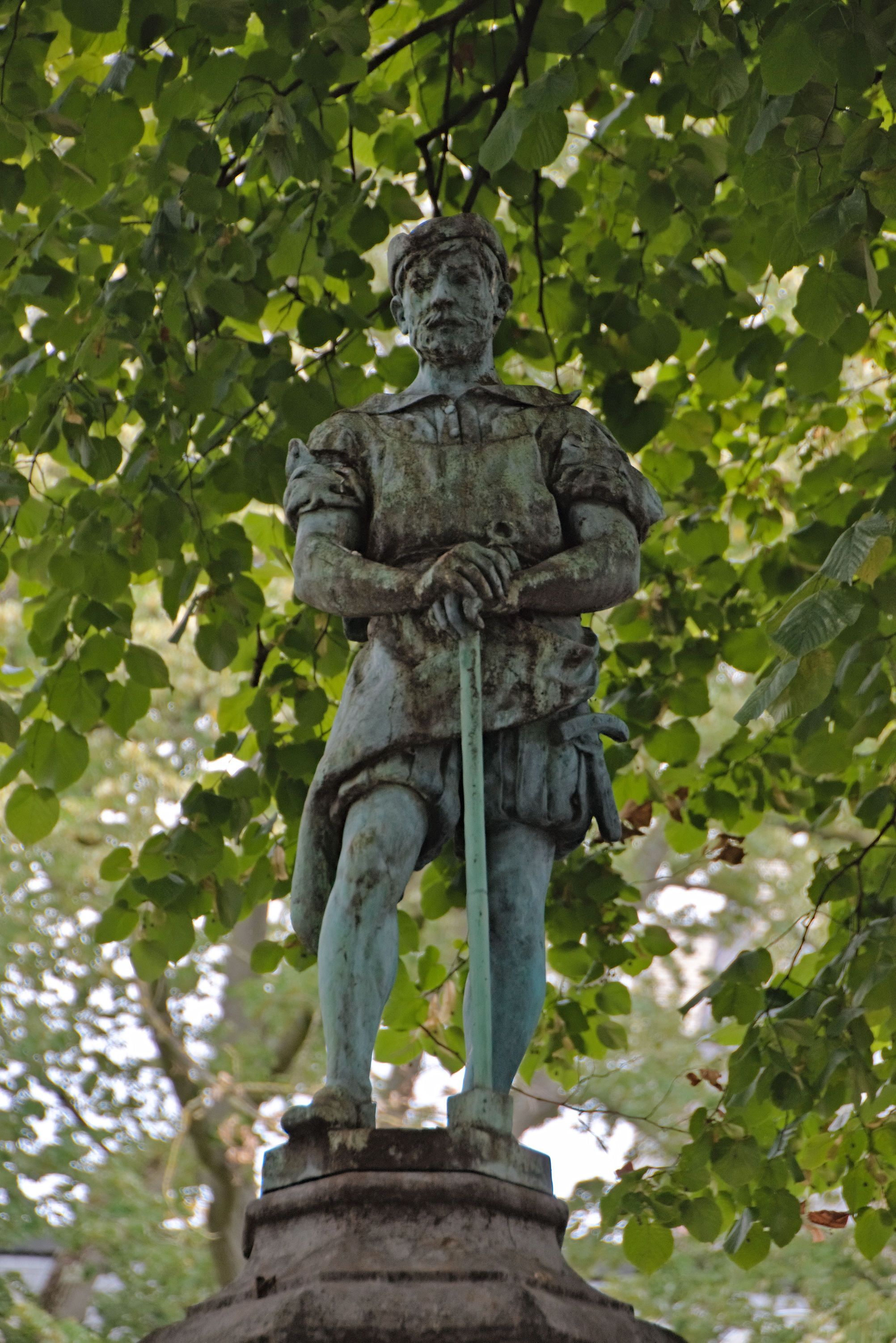 Cette statue a été réalisée par Louis-Gustave Cambier et fondue par la Compagnie des Bronzes. Cambier était un peintre, sculpteur et graveur belge. Il travailla principalement comme peintre ; ses œuvres sont notamment conservées dans la collection des Musées royaux des Beaux-Arts de Belgique et au MoMuse. On retrouve une de ses œuvres, le « Cimetière turc », dans la collection du Momuse. (PIRON, P., op.cit., Tome 1, p 179.).