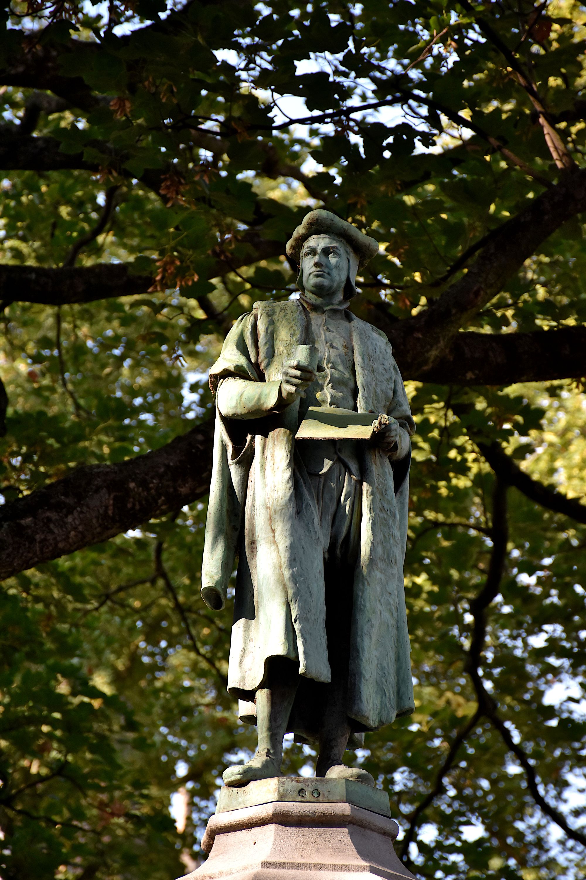 Cette statue a été réalisée par Louis Pierre Van Biesbroeck et fondue par la Compagnie des Bronzes. Van Biesbroeck était un sculpteur, graveur, peintre et ciseleur belge. Ses sculptures se trouvent principalement dans la région de Gand ; il est notamment l’auteur de deux éléments de façade du Musée des Beaux-Arts de Gand : De ideële kunst (de Verbeelding) et De realistische kunst (de Waarheid). (PIRON, P., op.cit, Tome 2,, p. 547.) L'artisan a une palette et des pinceaux dans la main gauche et un godet dans la droite.