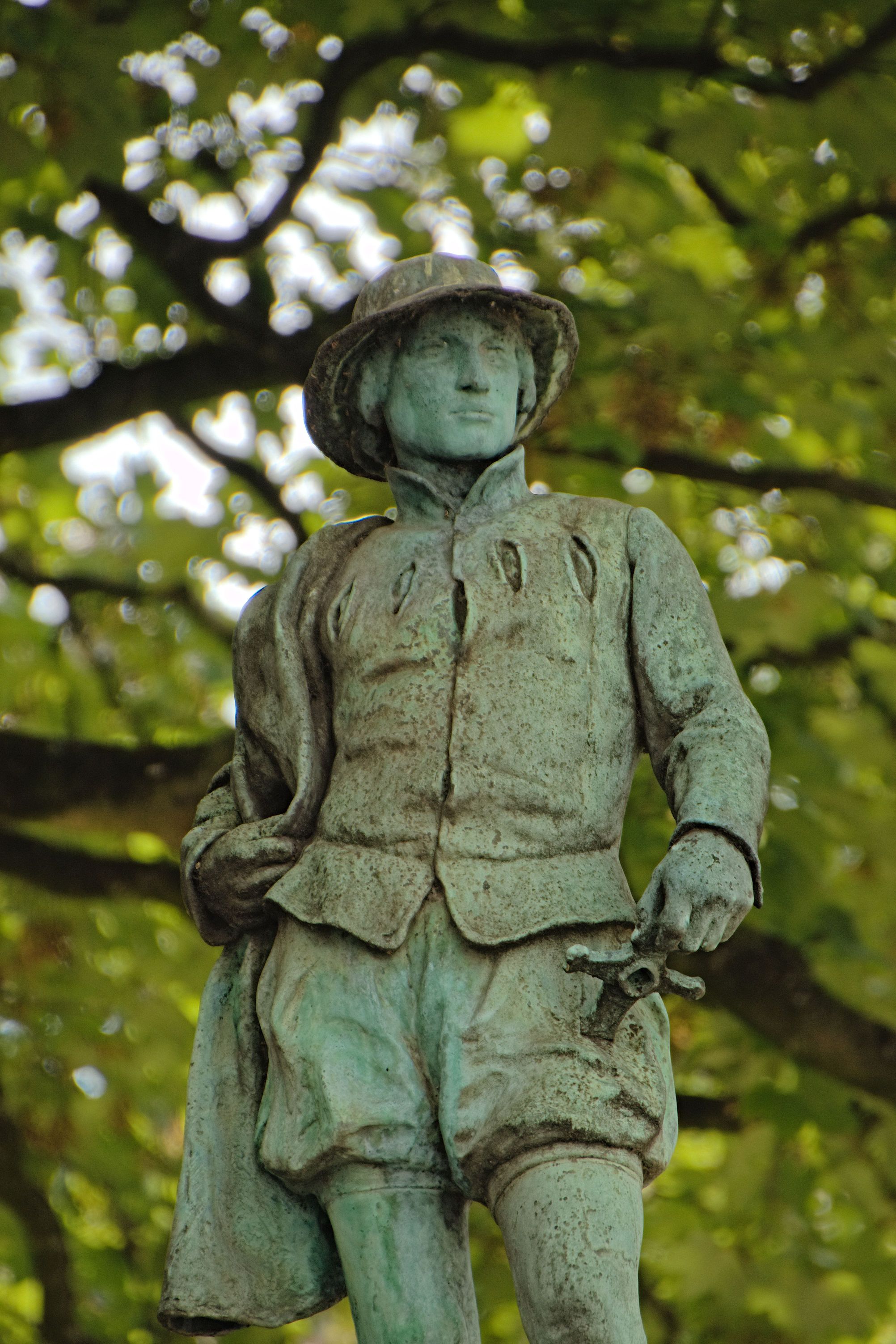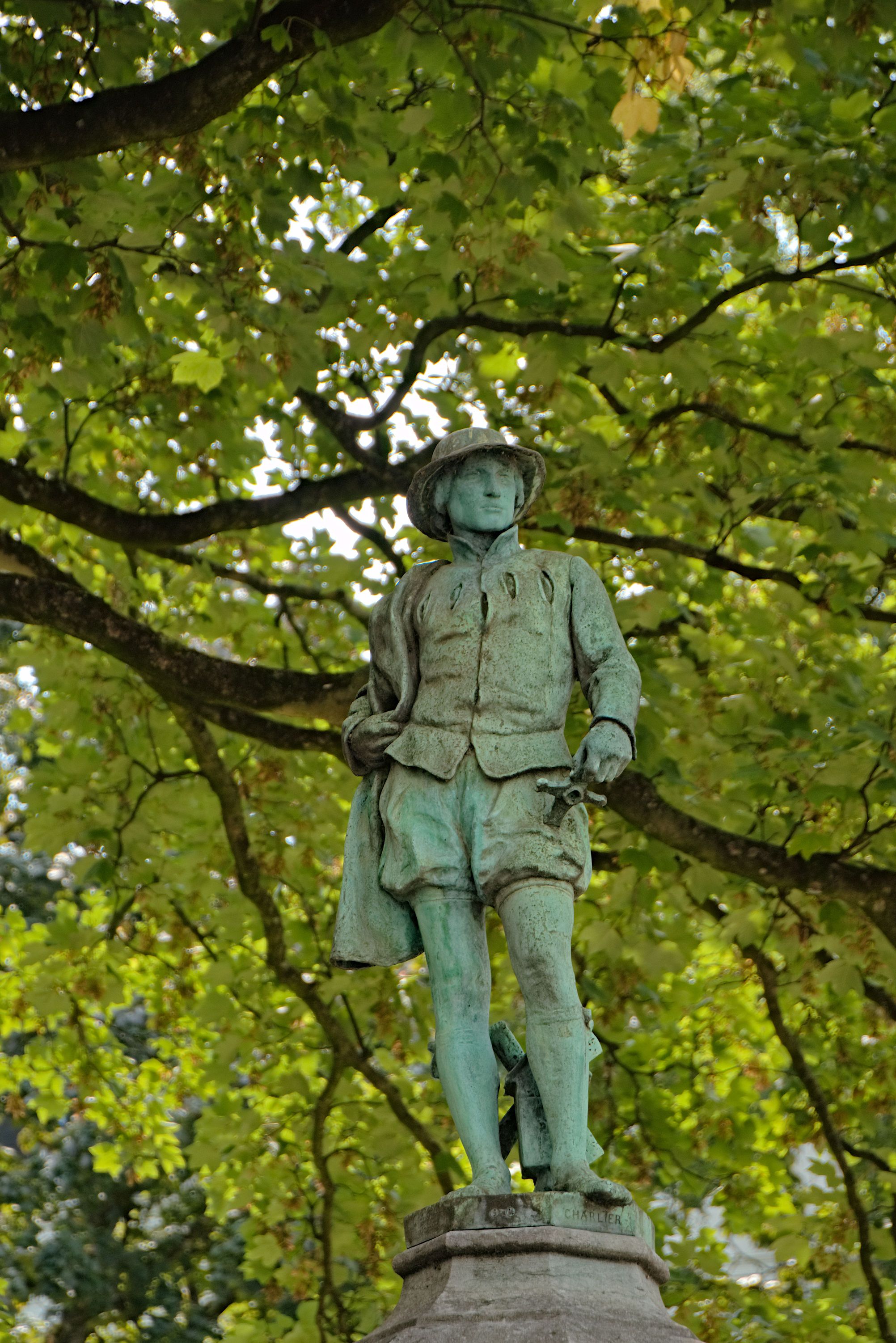 Cette statue a été réalisée par Guillaume Charlier et fondue par la Compagnie des Bronzes. Charlier était un sculpteur et peintre belge, dont certaines œuvres sont conservées au musée Charlier, qui porte son nom. Ses œuvres plus importantes se trouvent notamment à Tournai et à Blankenberge. (PIRON, P. op. cit., Tome 1, p. 209.)