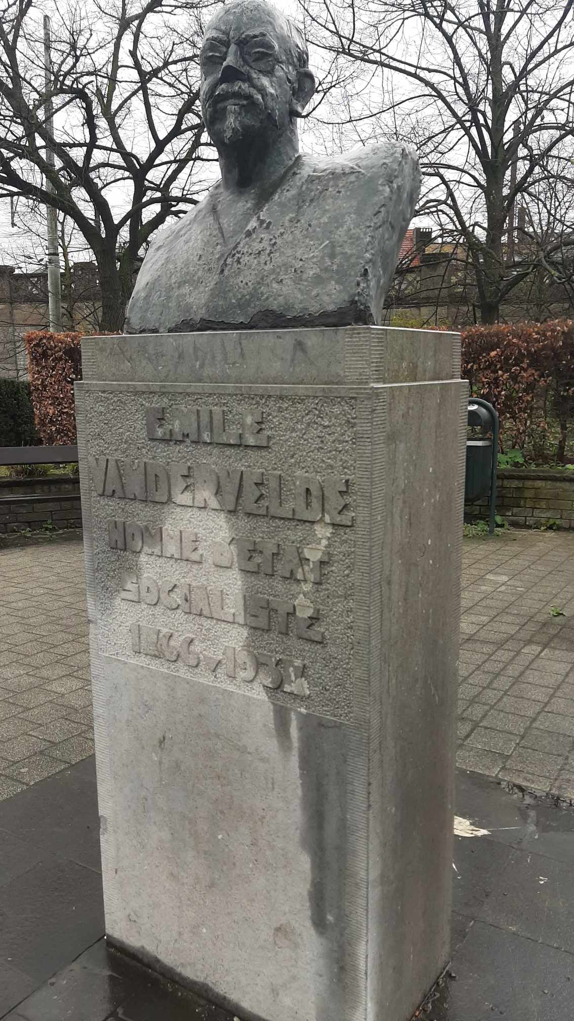 "EMILE VANDERVELDE HOMME D’ETAT SOCIALISTE 1866-1931 " (sur la face avance du socle)