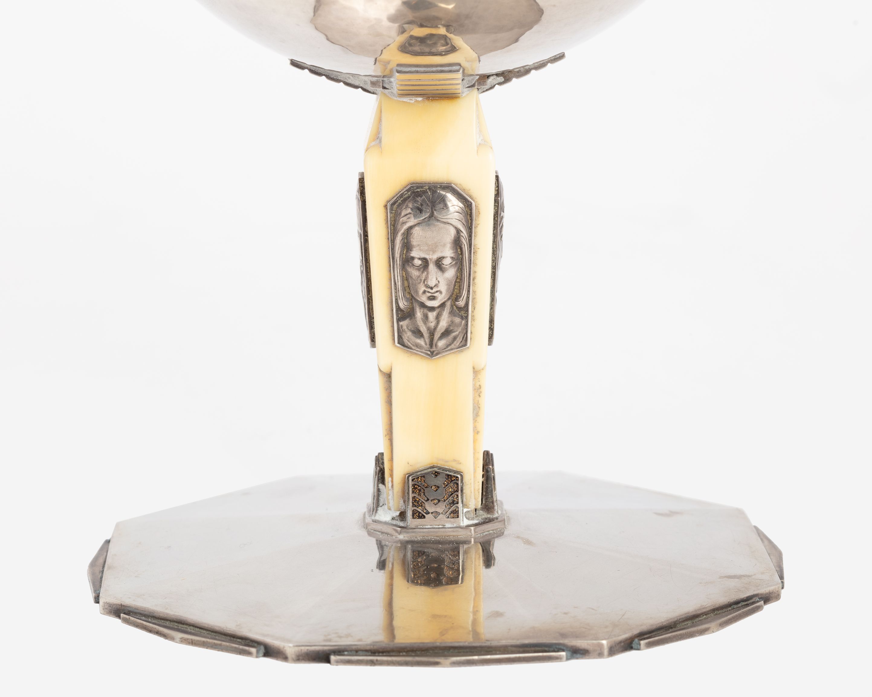 - dierlijk materiaal > ivoor (kruis op het deksel en steel)