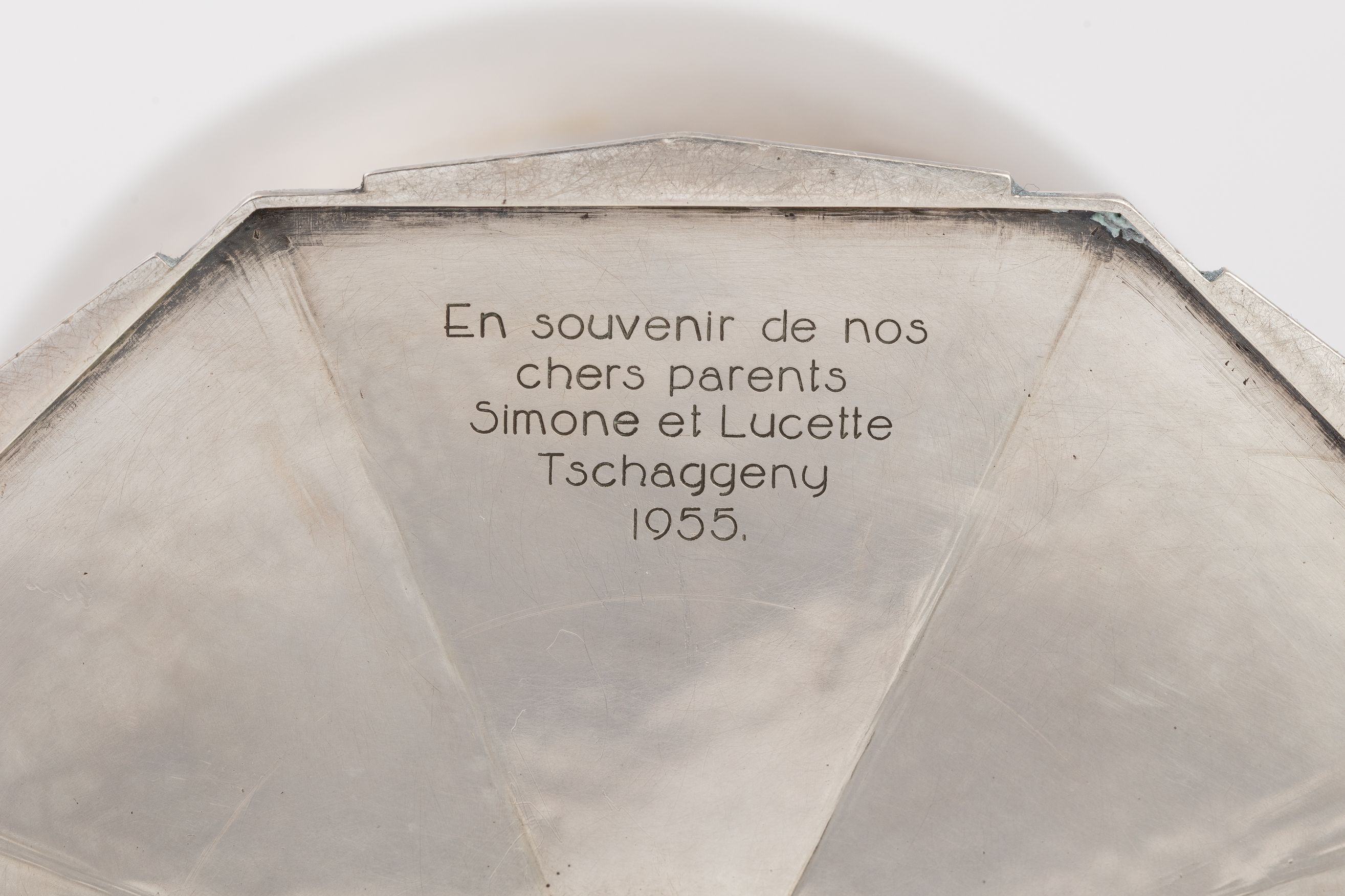 "En souvenir de nos / chers parents / Simone et Lucette / Tschaggeny / 1955." (gegraveerd, onder de voet)