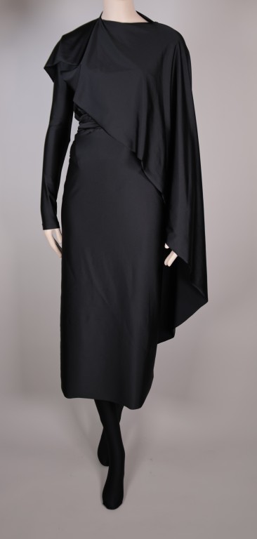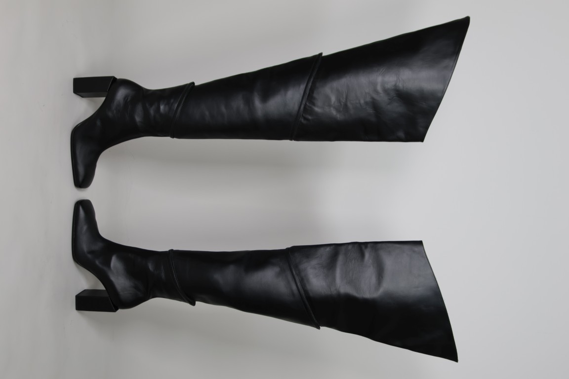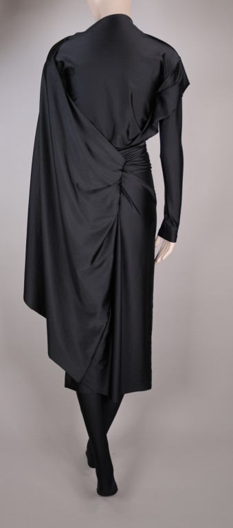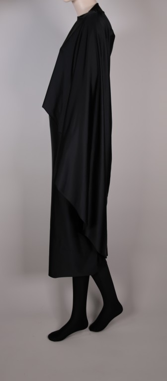 Zwarte jersey van polyamide en elastaan, zwart leer.