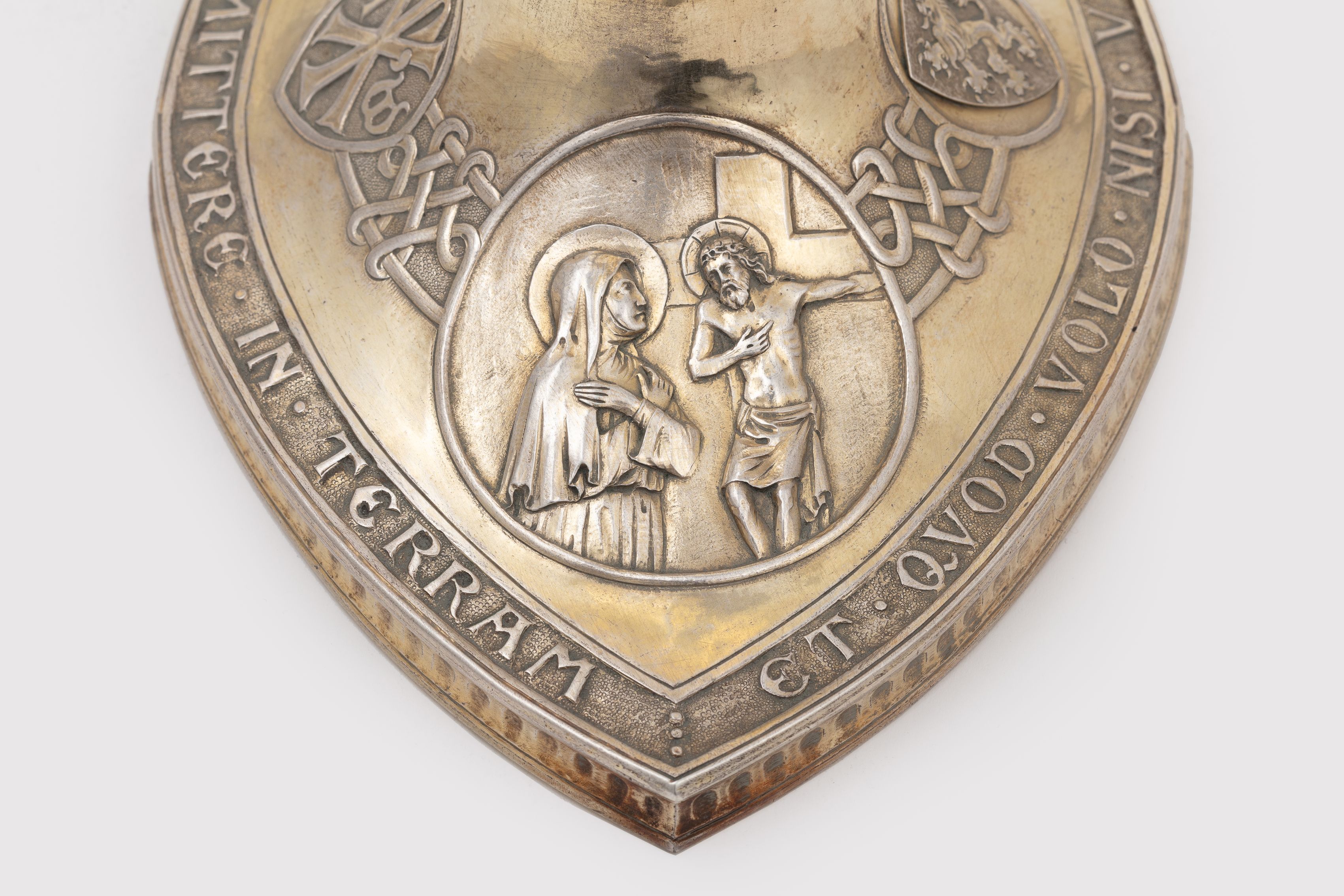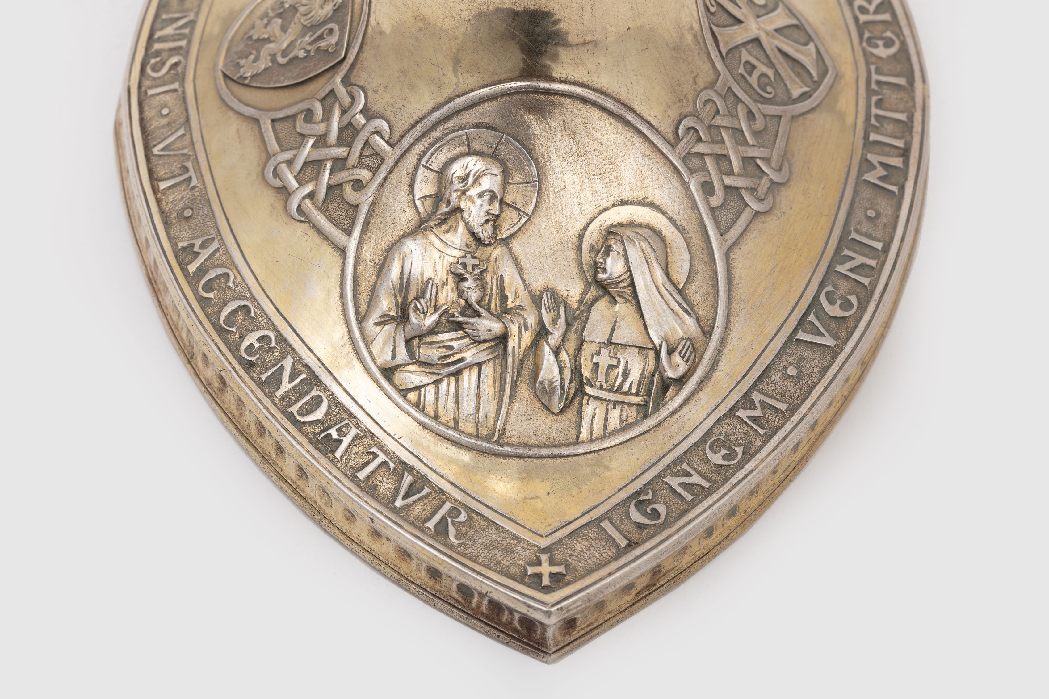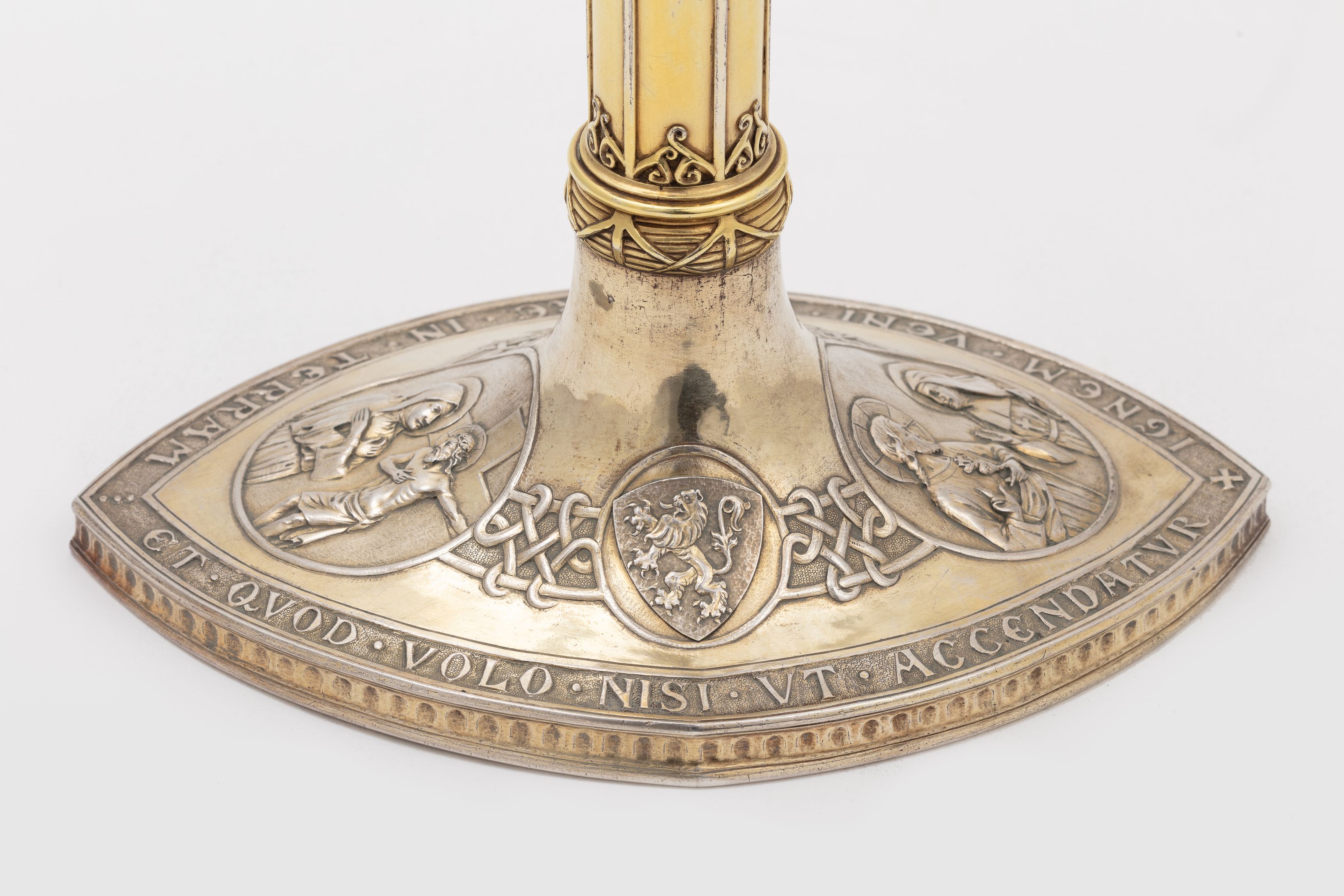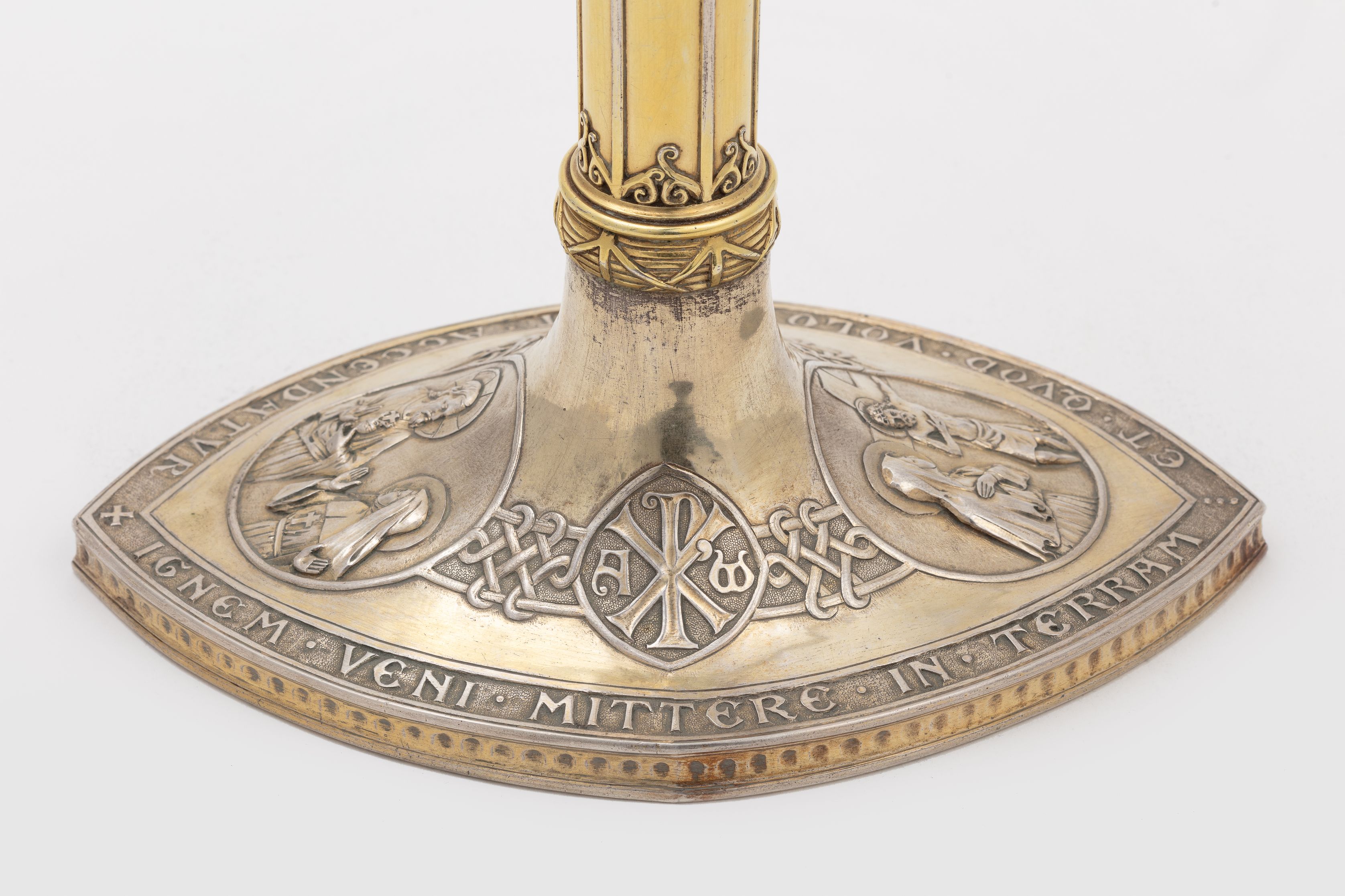 "IGNEM.VENI.MITTERE.IN.TERRAM / ET.QUOD.VOLO.NISI.UT.ACCENDATUR" (omtrek van de voet)