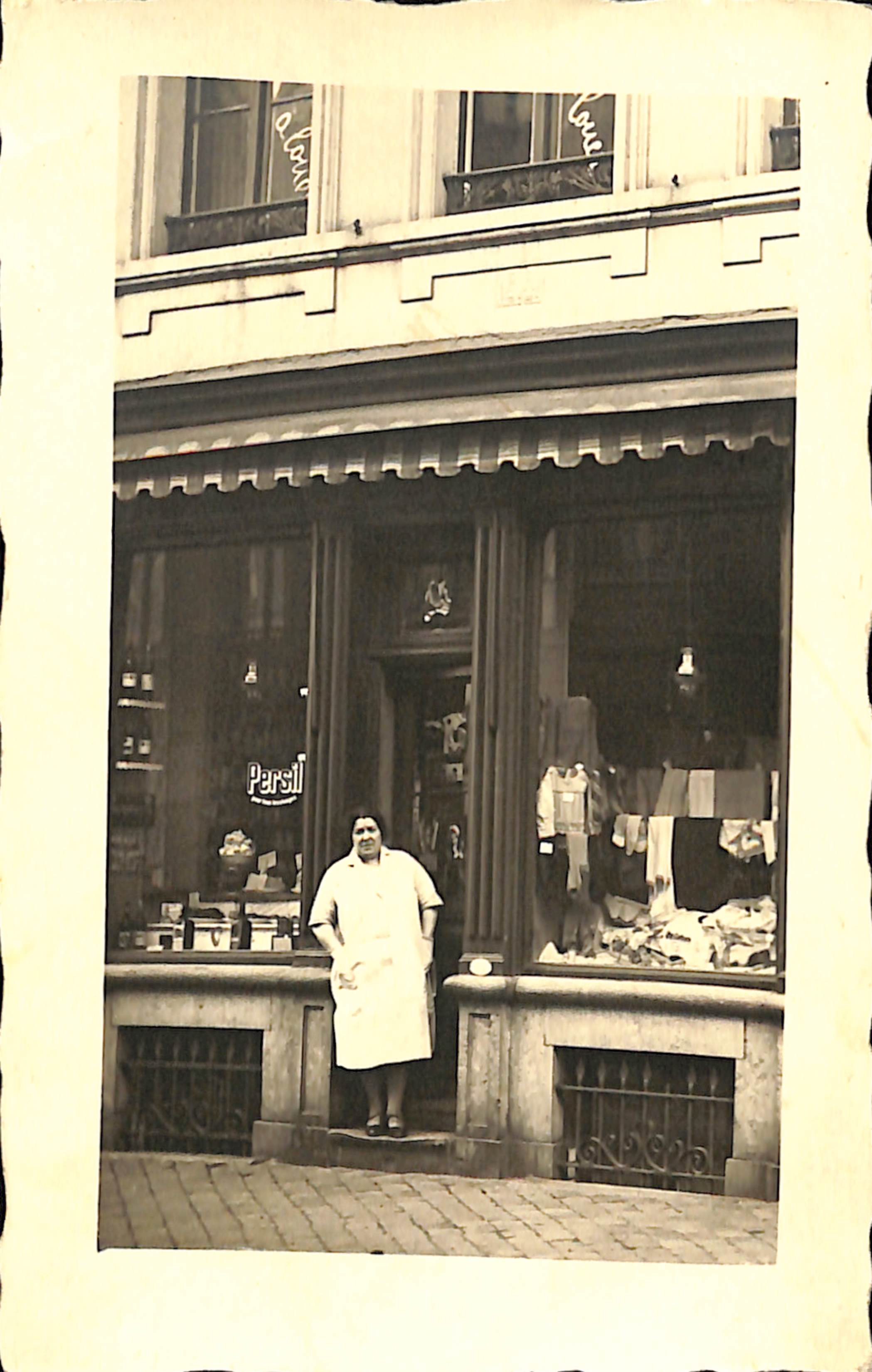 Fotokaart Koloniale goederen winkel F. Dubois, Liverpoolstraat 44 (Sint-Jans-Molenbeek), fotogr. onbekend, 1932.