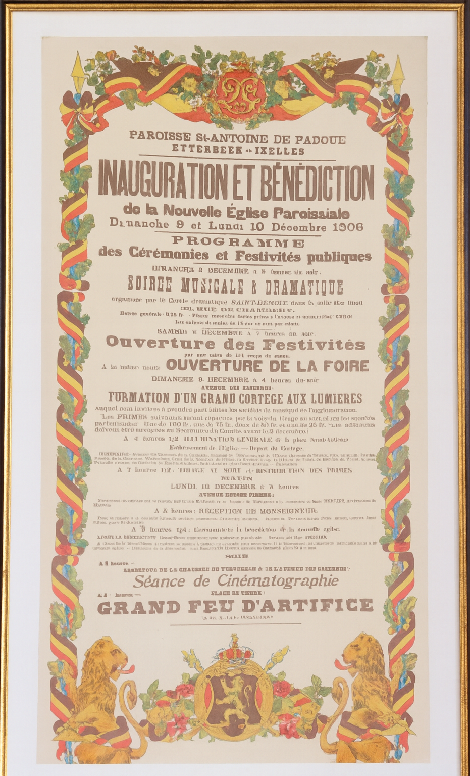 Het originele affiche wordt bewaard in de archieven van de religieuze instelling. Een ingelijste kopie hangt in de kerk, vlakbij de deur naar de sacristie.