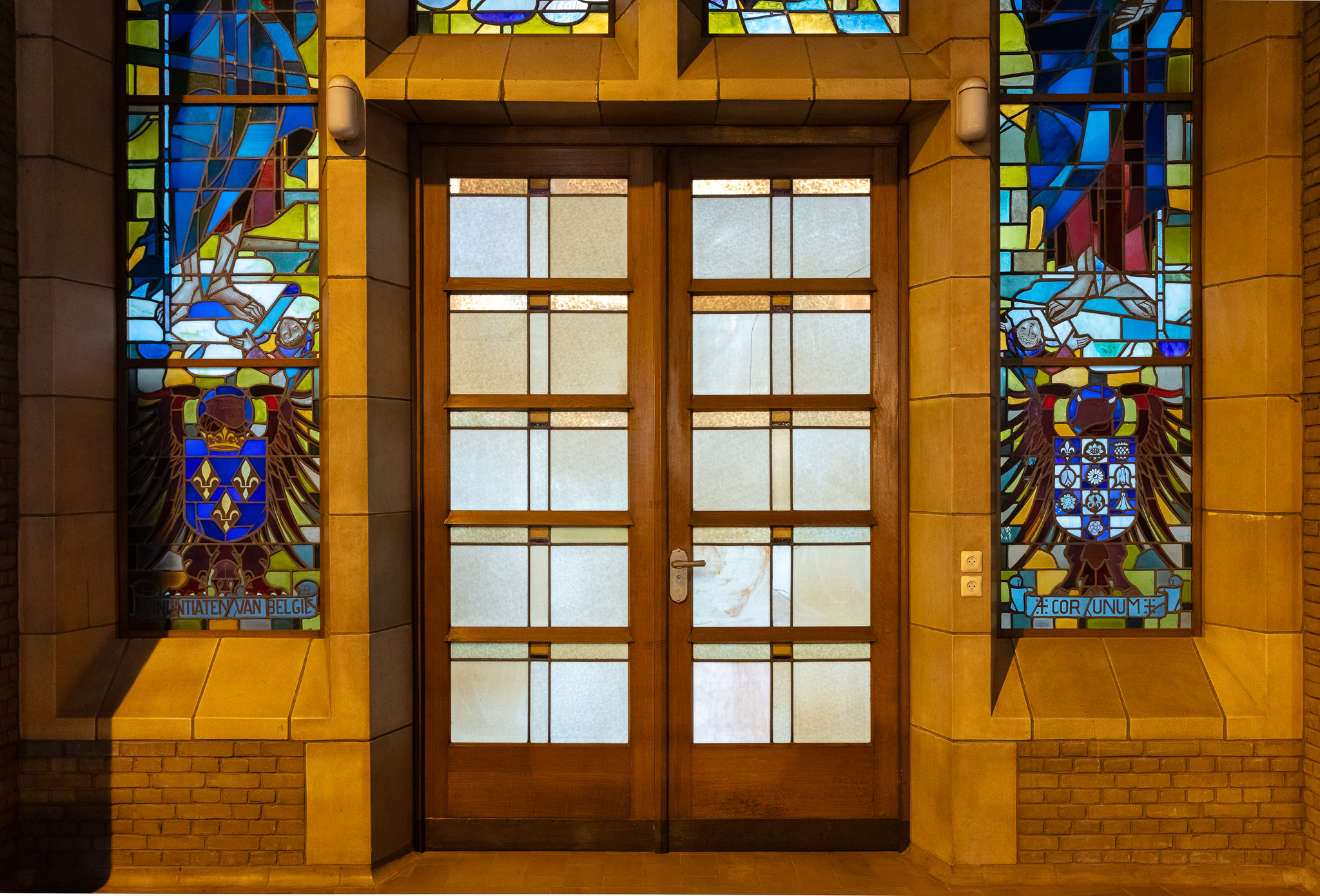 Drie dubbele deuren in de galerij, in het koor van de parochiekerk, achter het altaar van het Heilig Hart.