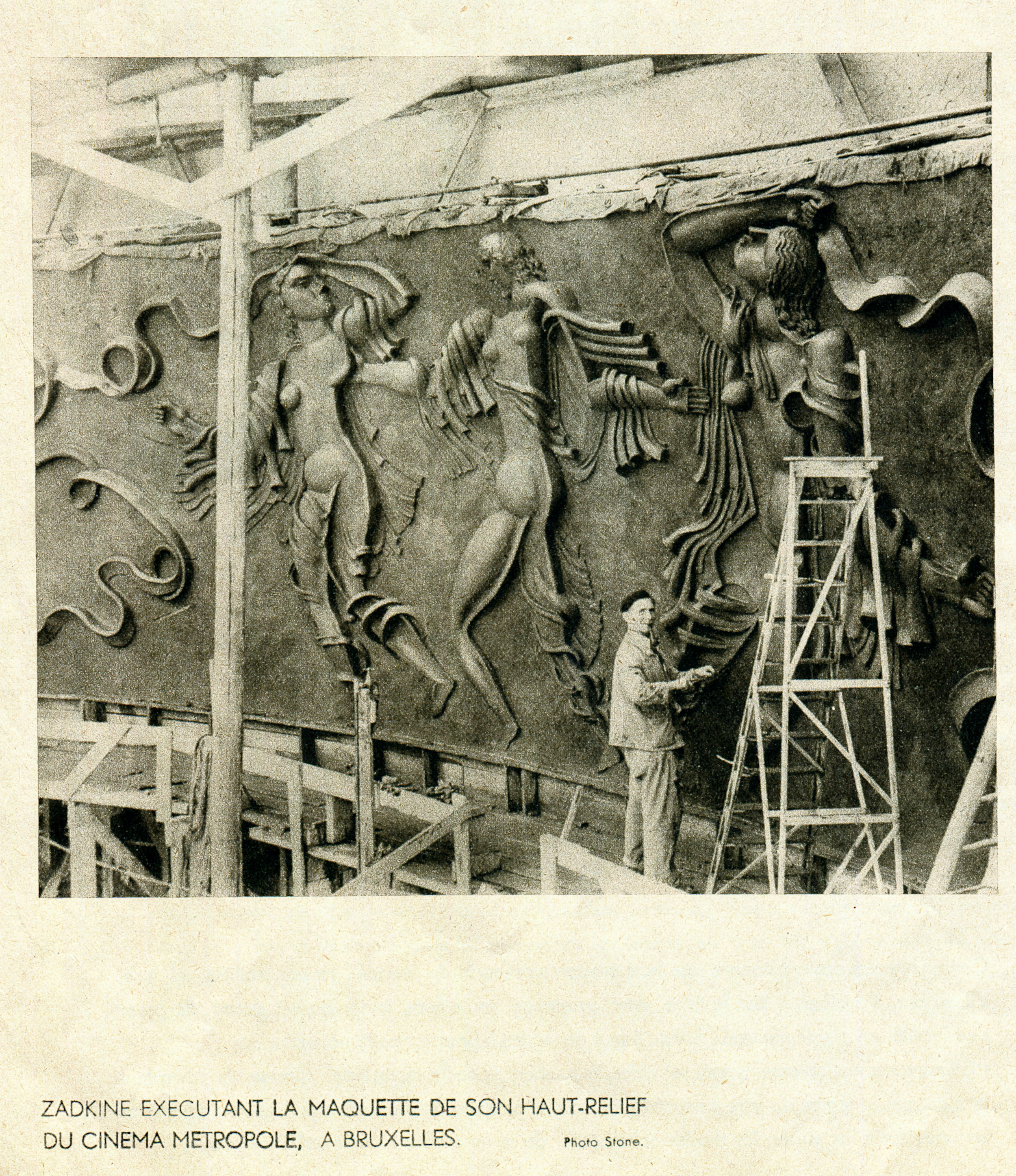 Van Wit-Russische afkomst, wordt Zadkine in 1921 genaturaliseerd tot Fransman. Tijdens zijn leven geniet hij van verschillende grote tentoonstellingen, waaronder een retrospectieve in januari 1933 in het Paleis voor Schone Kunsten in Brussel, waar niet minder dan 254 werken samenkomen. Enkele maanden eerder werd de nieuwe bioscoop Le Métropole, ontworpen door Adrien Blomme, ingehuldigd, voorzien van een uitzonderlijk monumentaal bas-reliëf van Ossip Zadkine.
