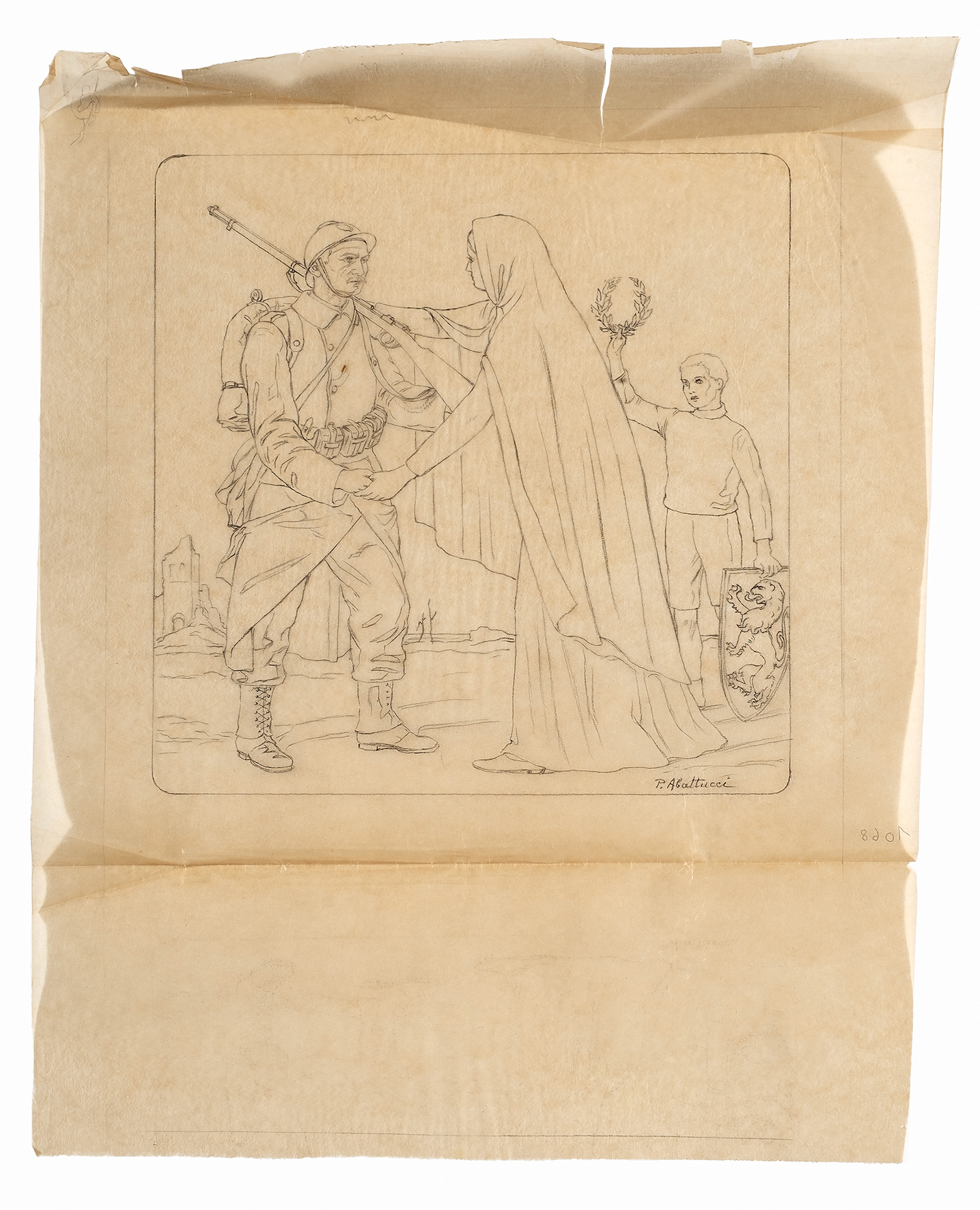Pierre Abattucci, Patriottisch diploma-souvenirproject, potlood op calqueerpapier, s.d. [ca. 1918].