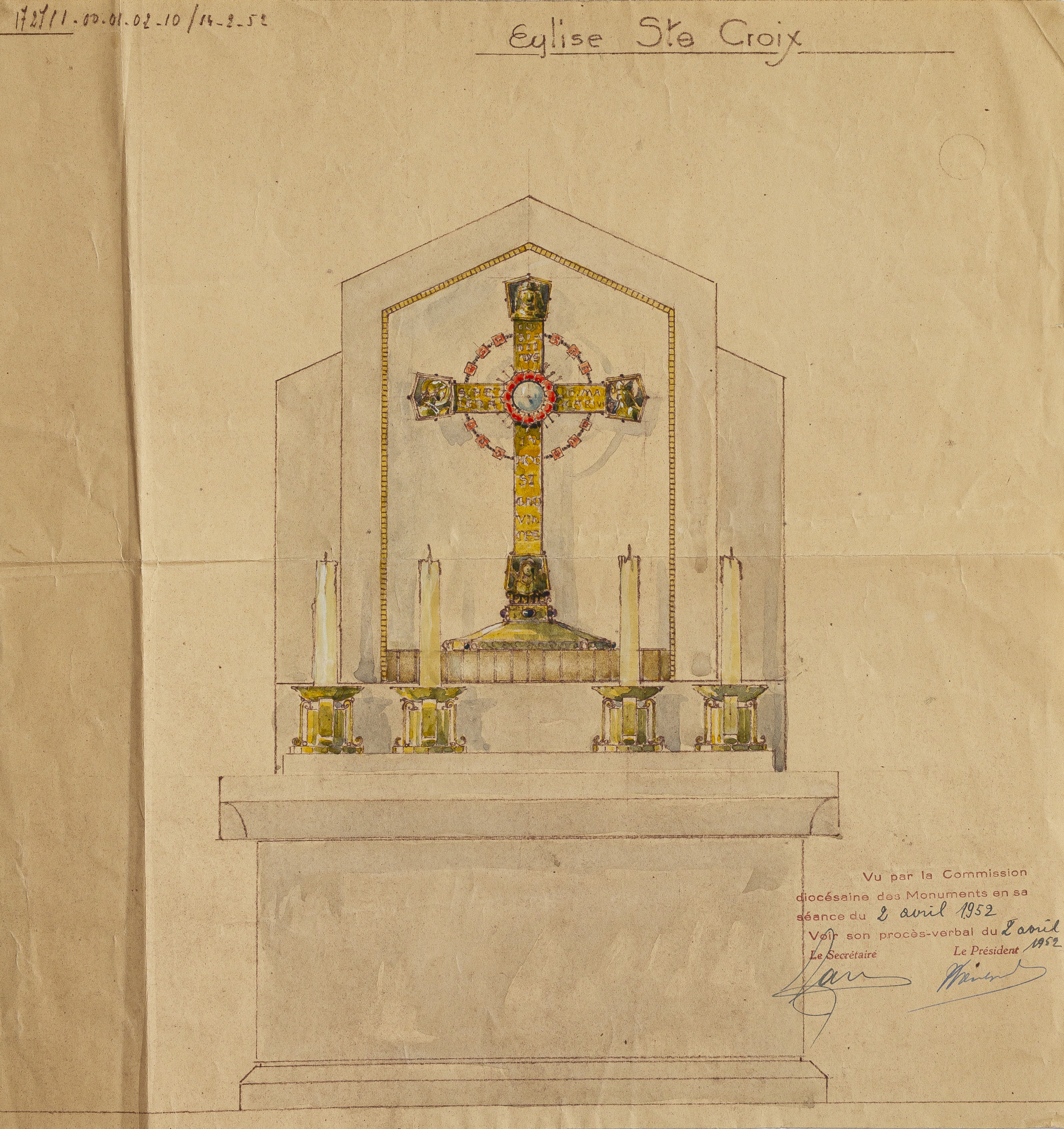 Het originele ontwerp van het werk, dat in april 1952 door de Diocesane Commissie voor Monumenten werd goedgekeurd, wordt bewaard in het archief van juwelier Holemans Manalys.