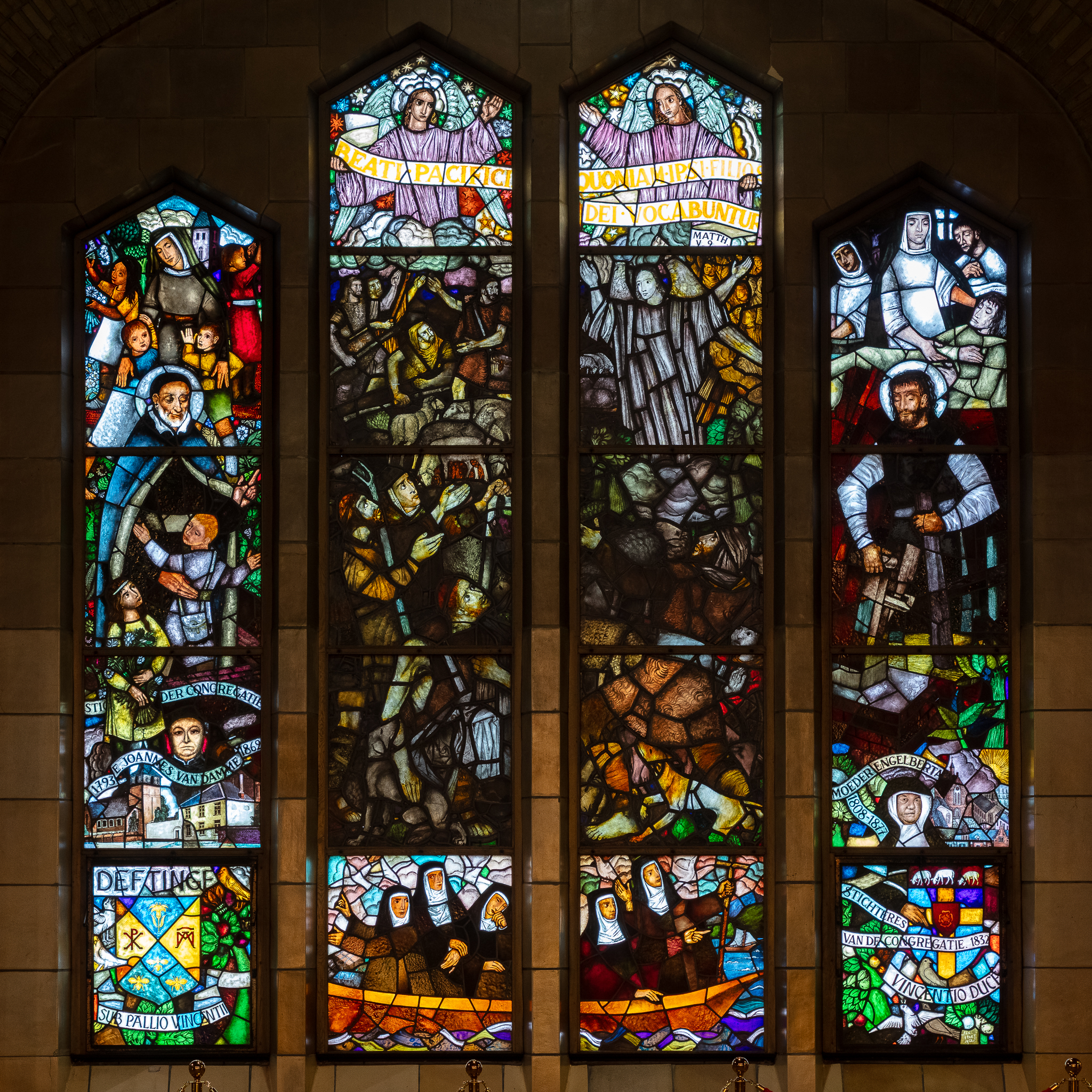 Glas-in-loodraam geschonken door de zusters van St. Vincentius a Paulo van Deftingen in 1962.