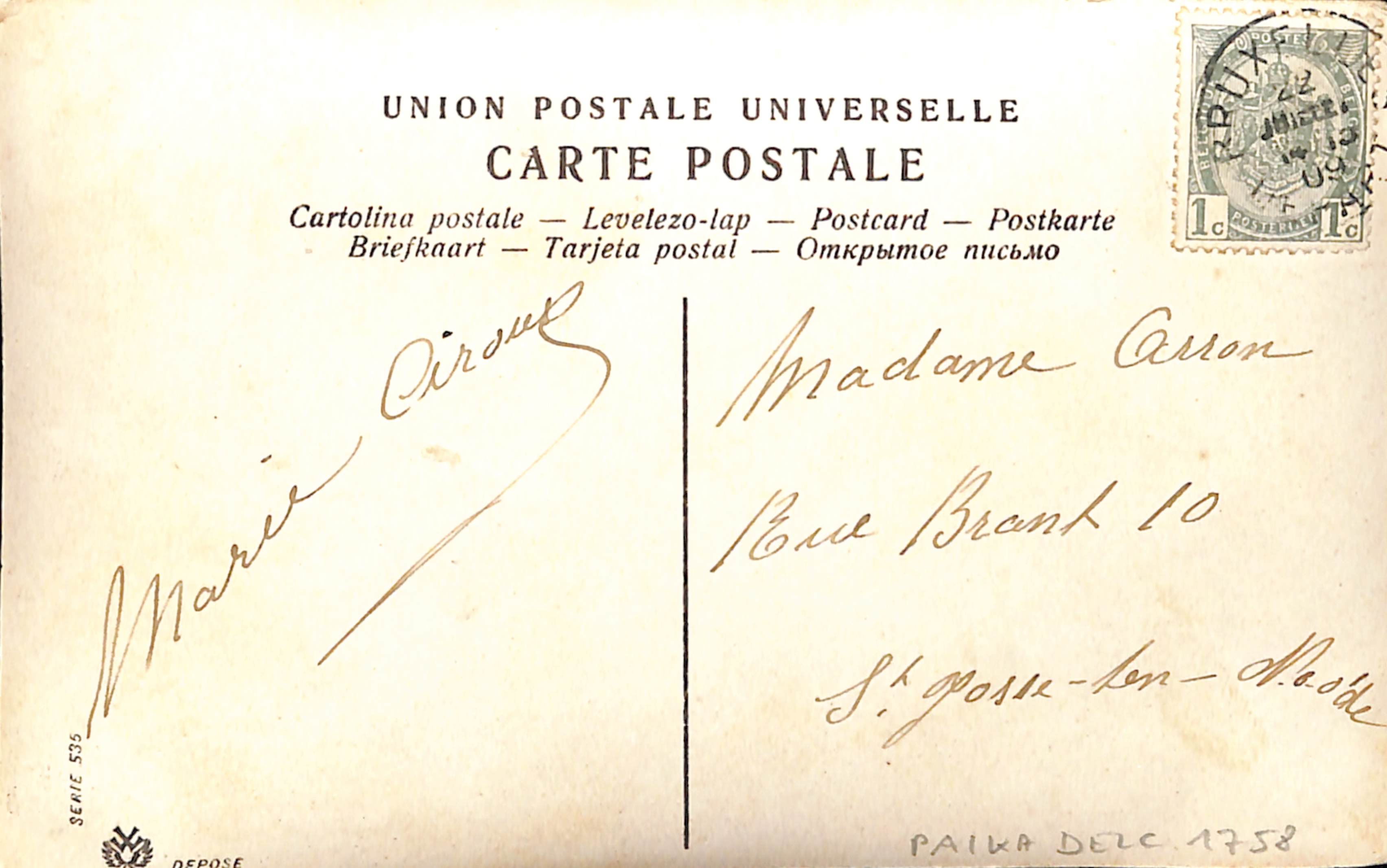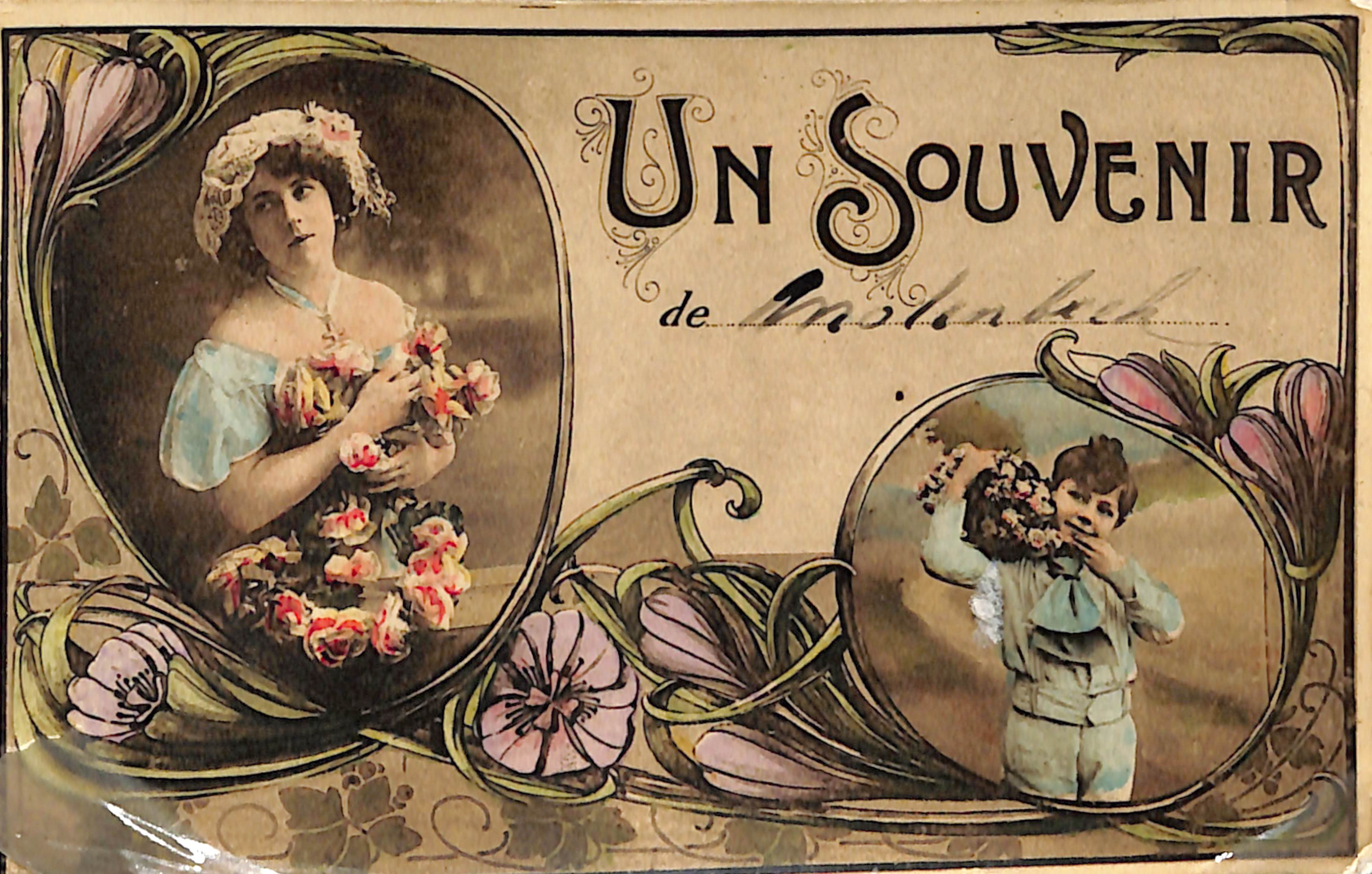 Fantasiekaart “Un souvenir de” Sint-Jans-Molenbeek, uitg. V. W. (Parijs), 1909.