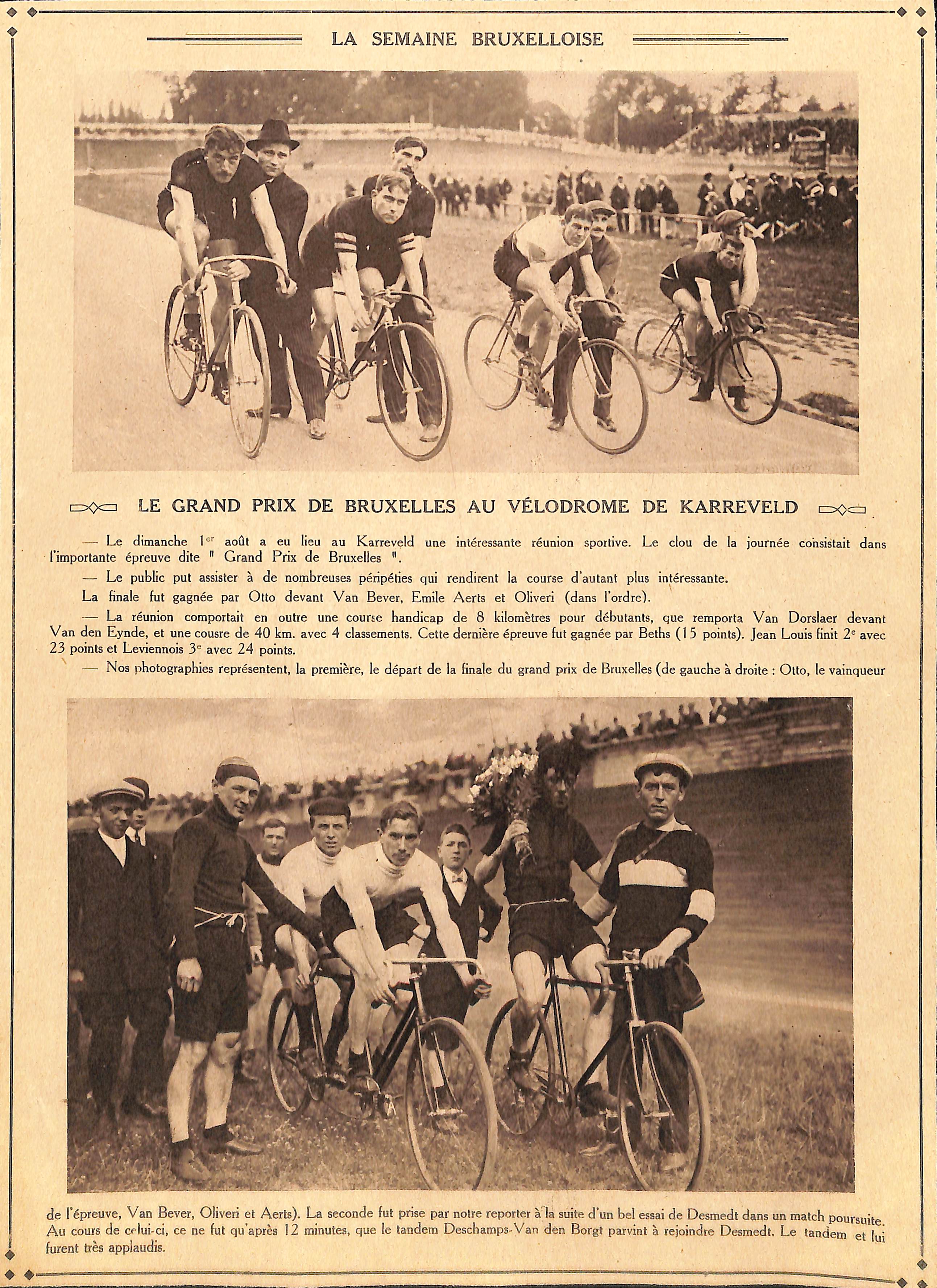 Krantenknipsel De Grand Prix van Brussel in het Karreveldvelodrome, in: La Semaine Buxelloise, s.d. [1914-1918].