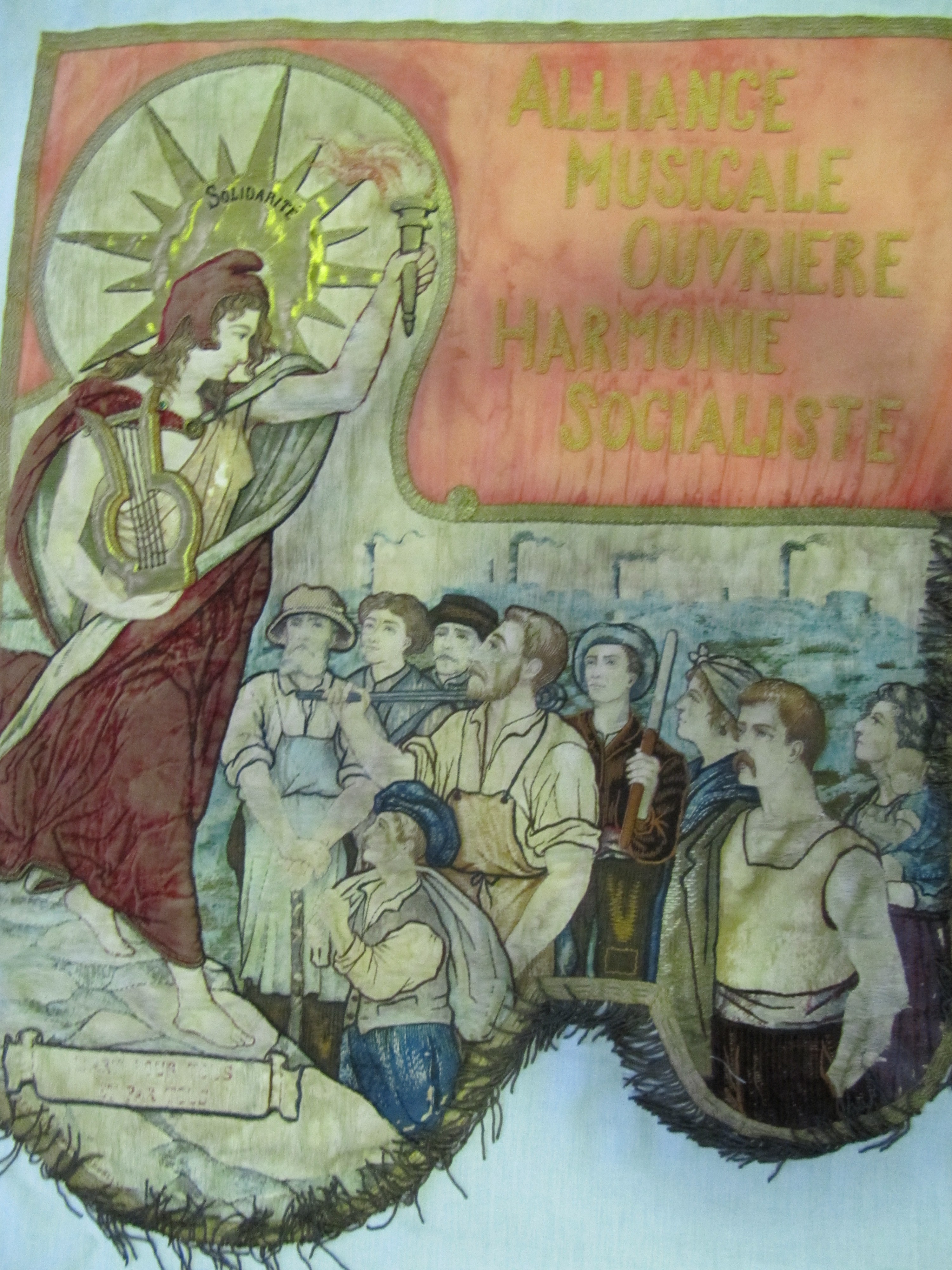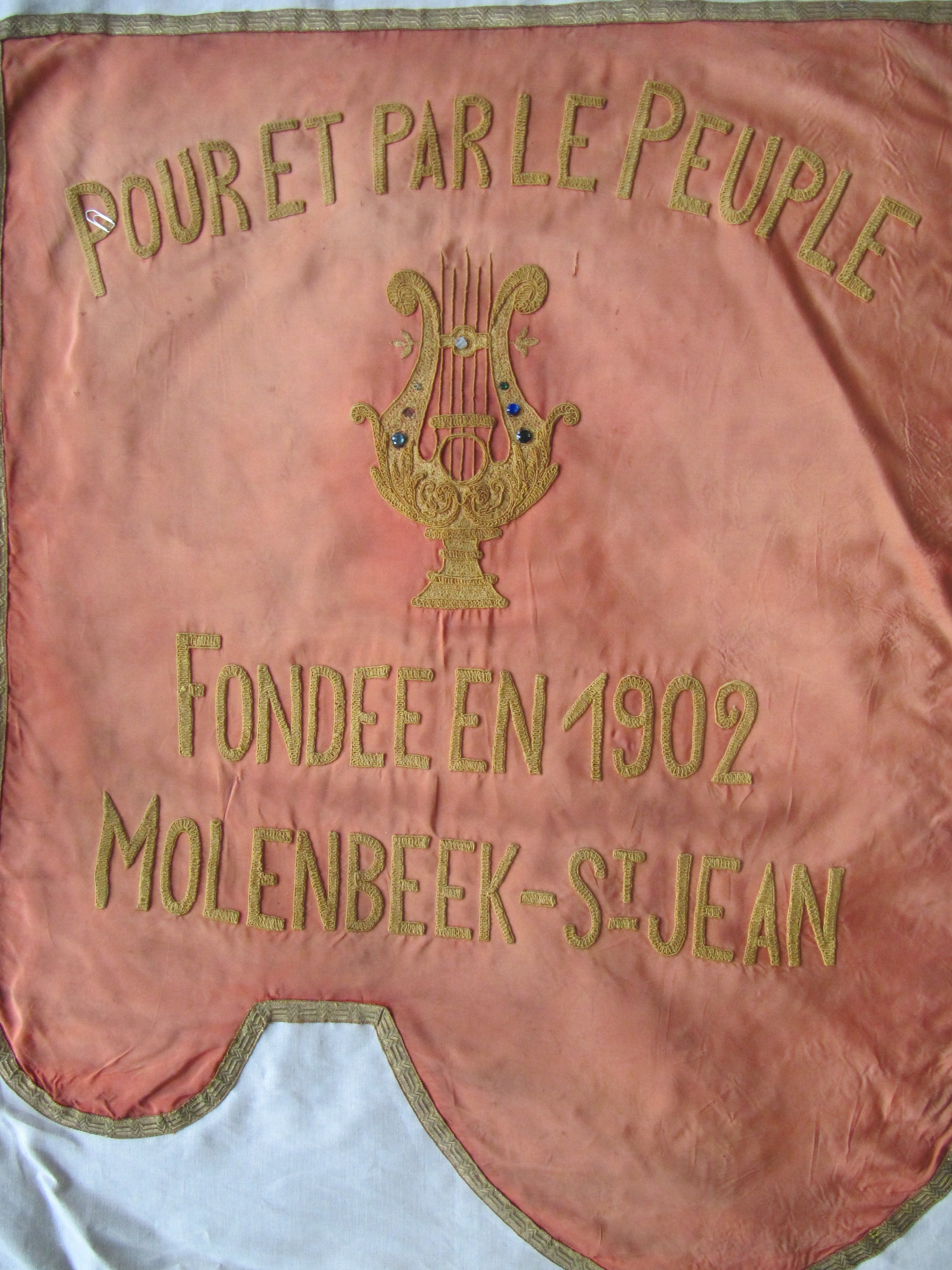 Dubbelzijdige vlag van de "Alliance musicale ouvrière" van Sint-Jans-Molenbeek gesticht in 1902, s.d. [eerste helft 20ste eeuw].