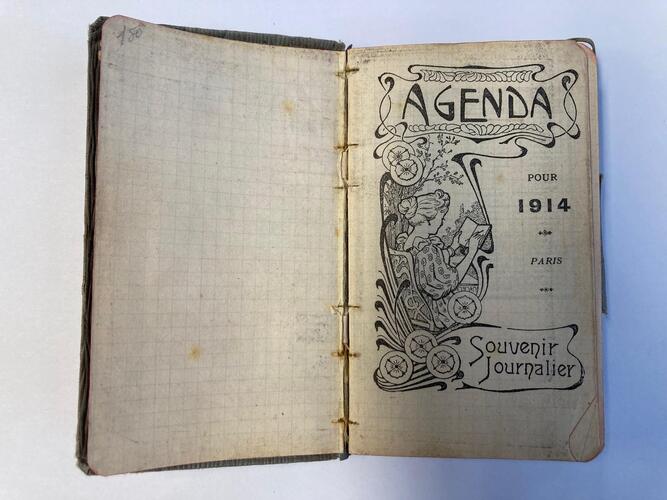 Agenda 1914 van Jean Schols met aantekeningen over de oorlogscampagne van het Belgische leger, 1914.