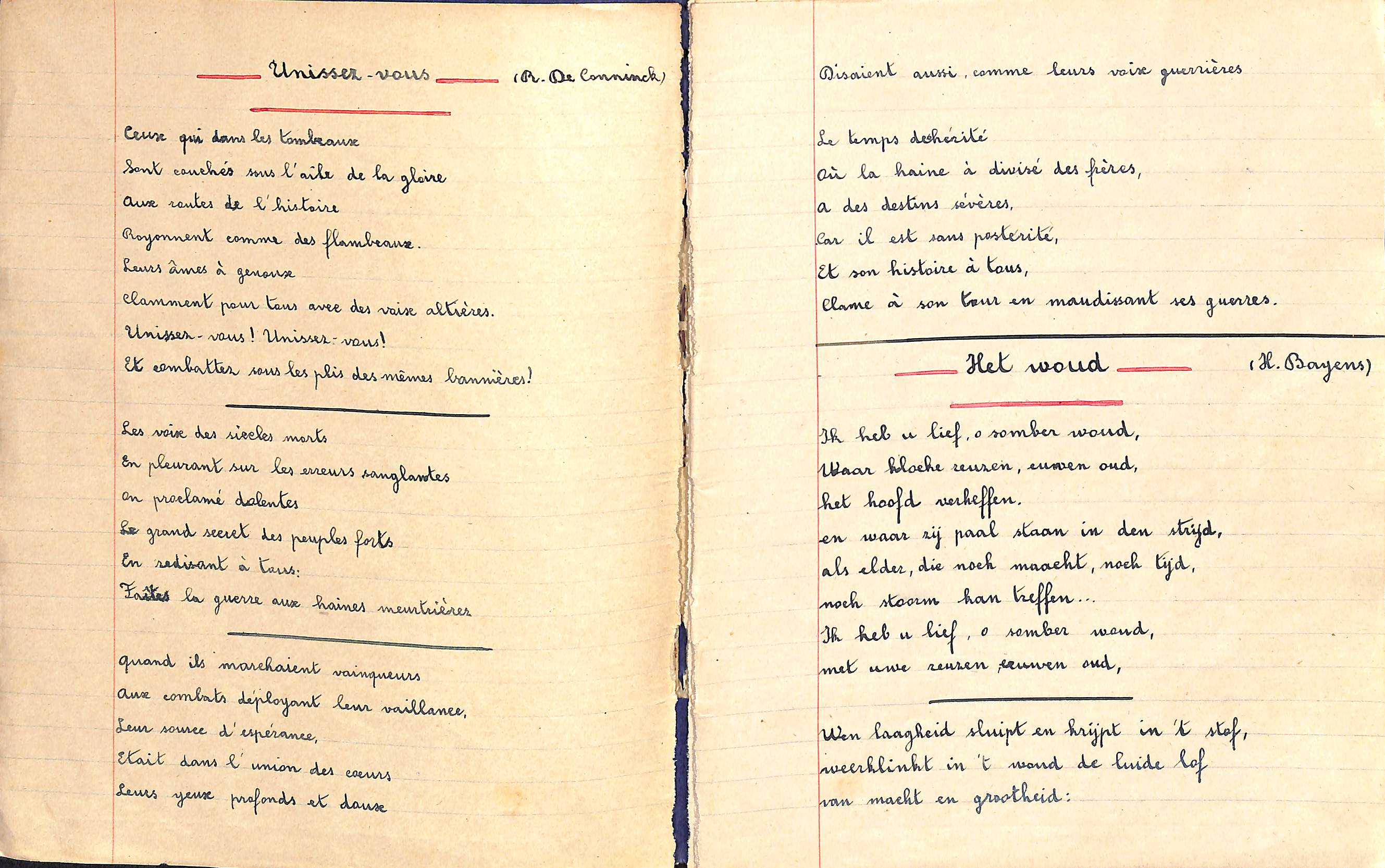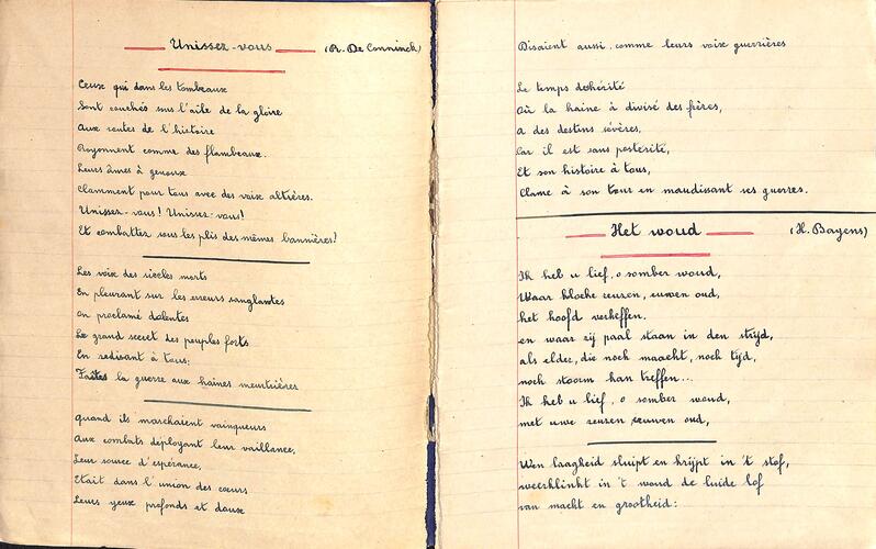 Schoolschrift van Marie-Jeanne Vuyge (Franse en Nederlandse poëzie), Sint-Jans-Molenbeek, s.d. [rond 1940].