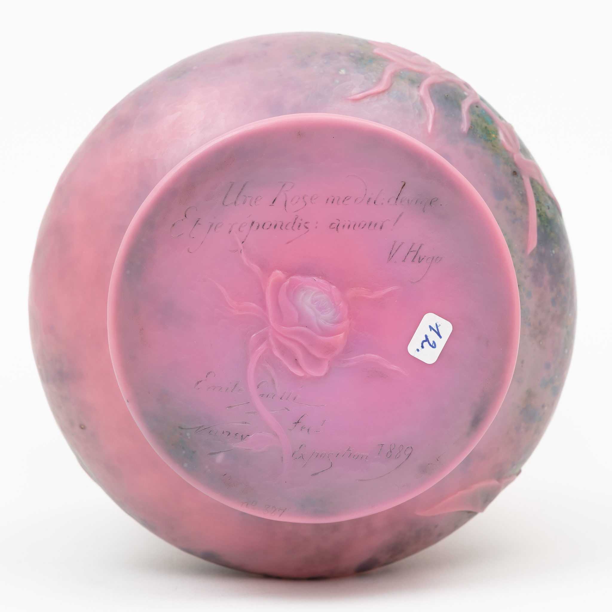 "'Une Rose me dit : devine... Et je répondis : Amour!' V. Hugo / Emile Gallé / Nancy / Exposition 1889 / n° 327"