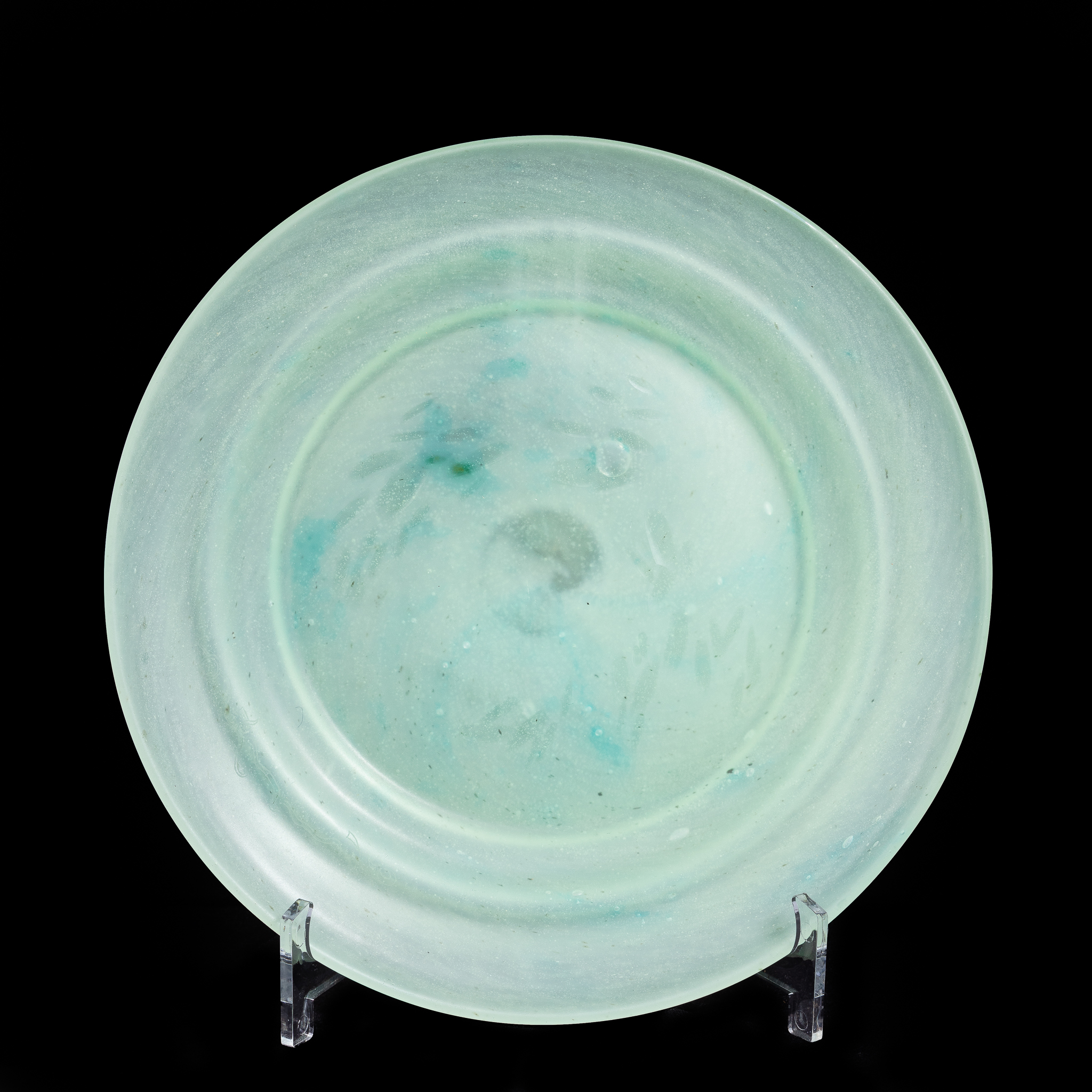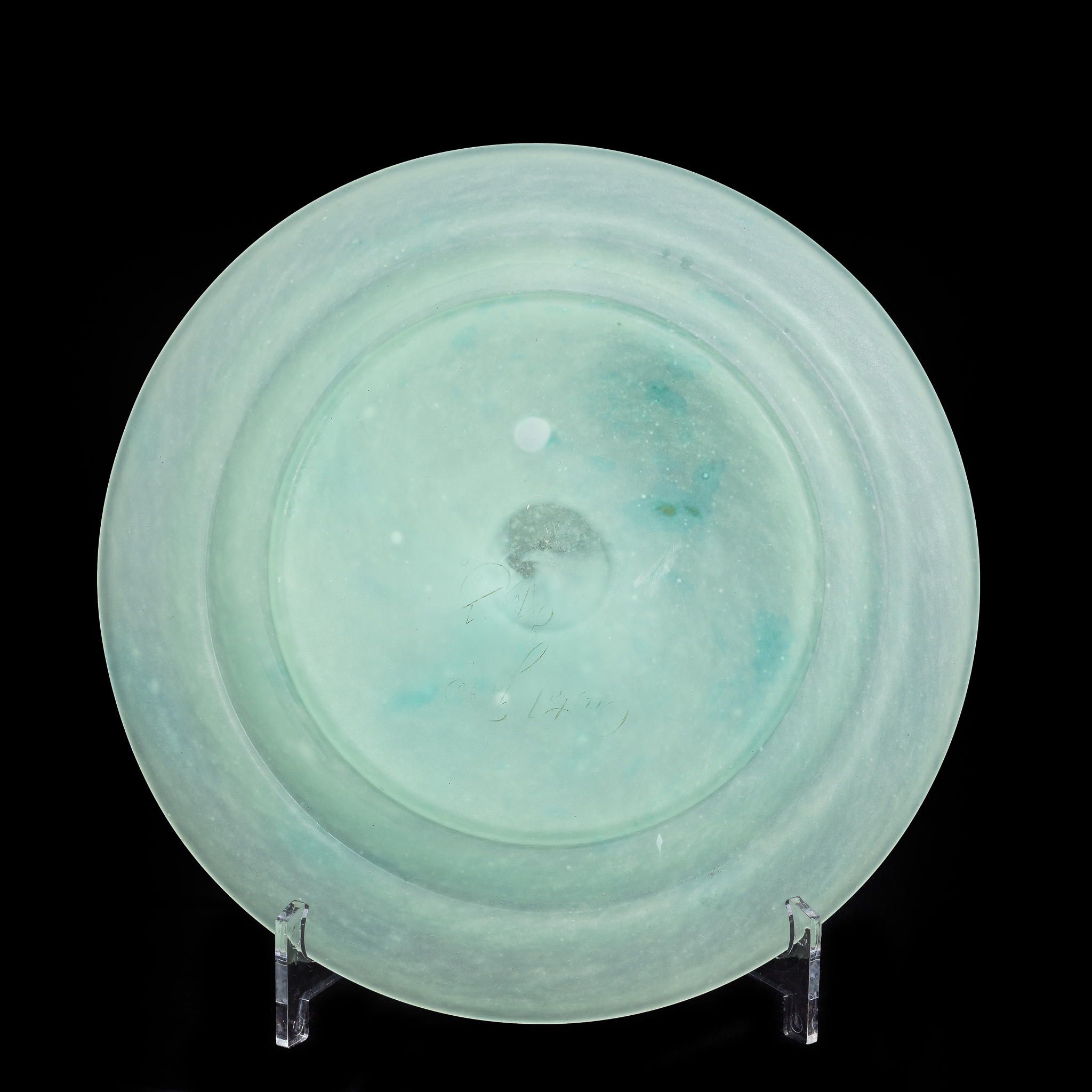 Bord, gemodelleerd en gegraveerd kristal, imitatie van de keizerlijke groene jade