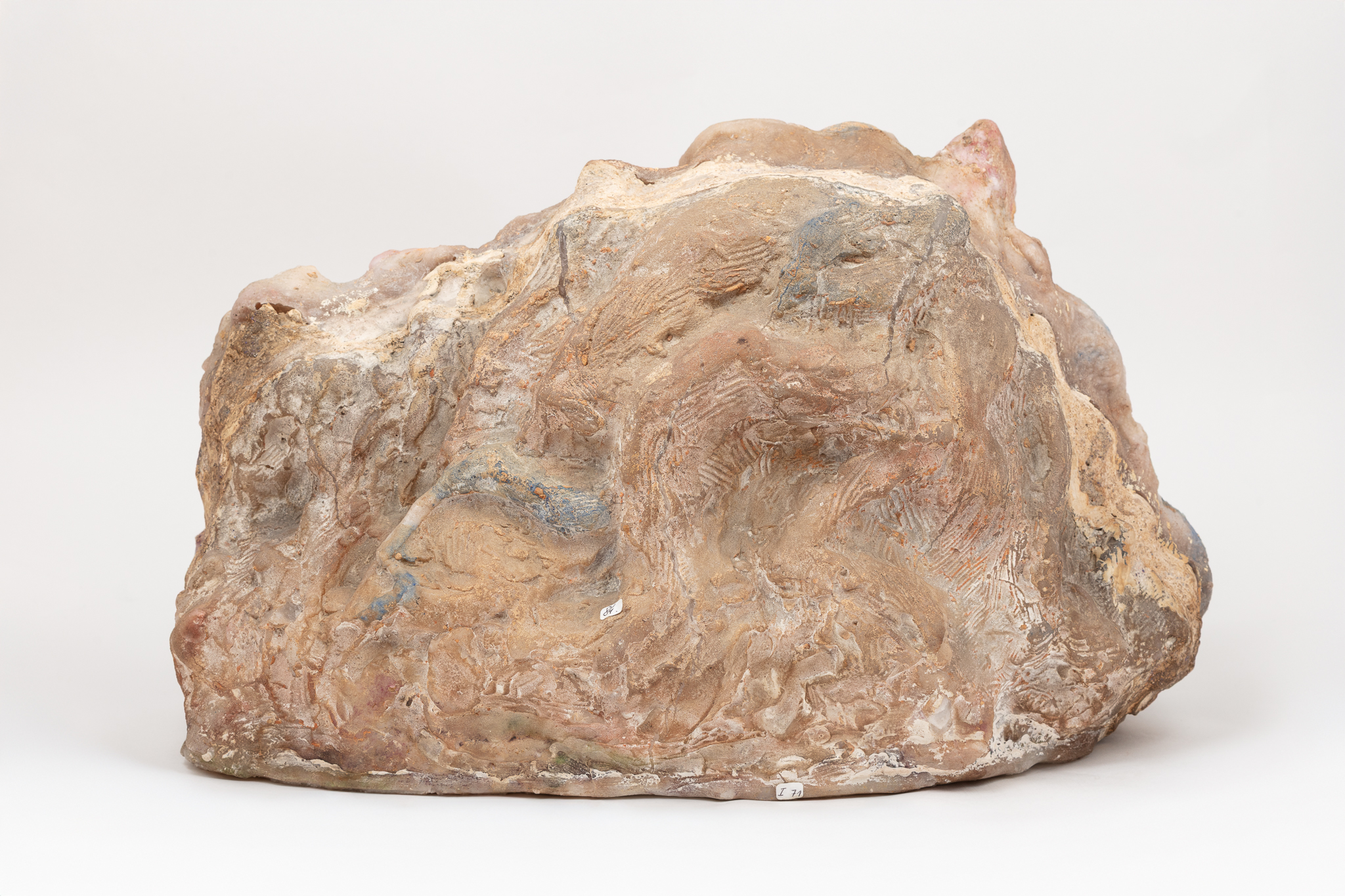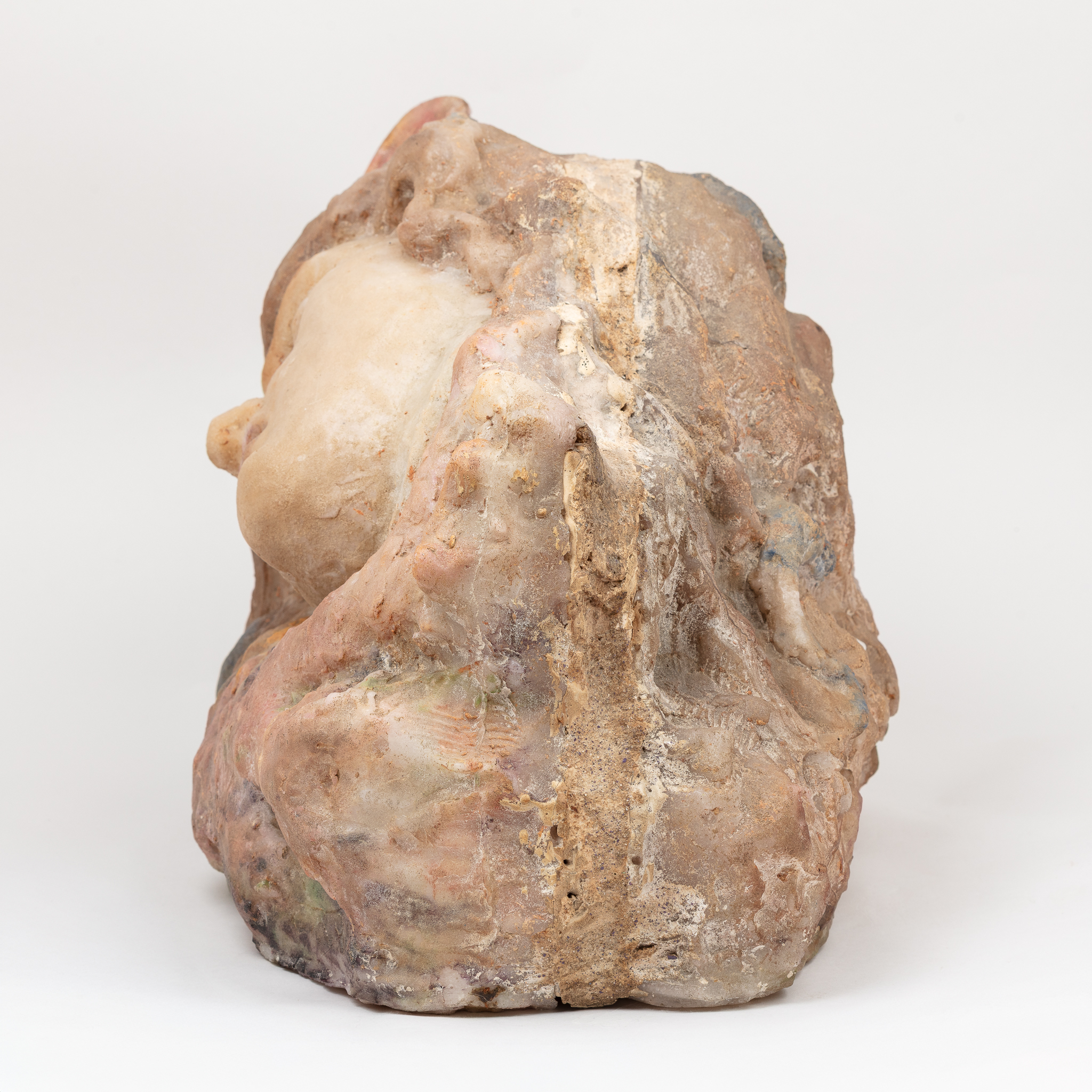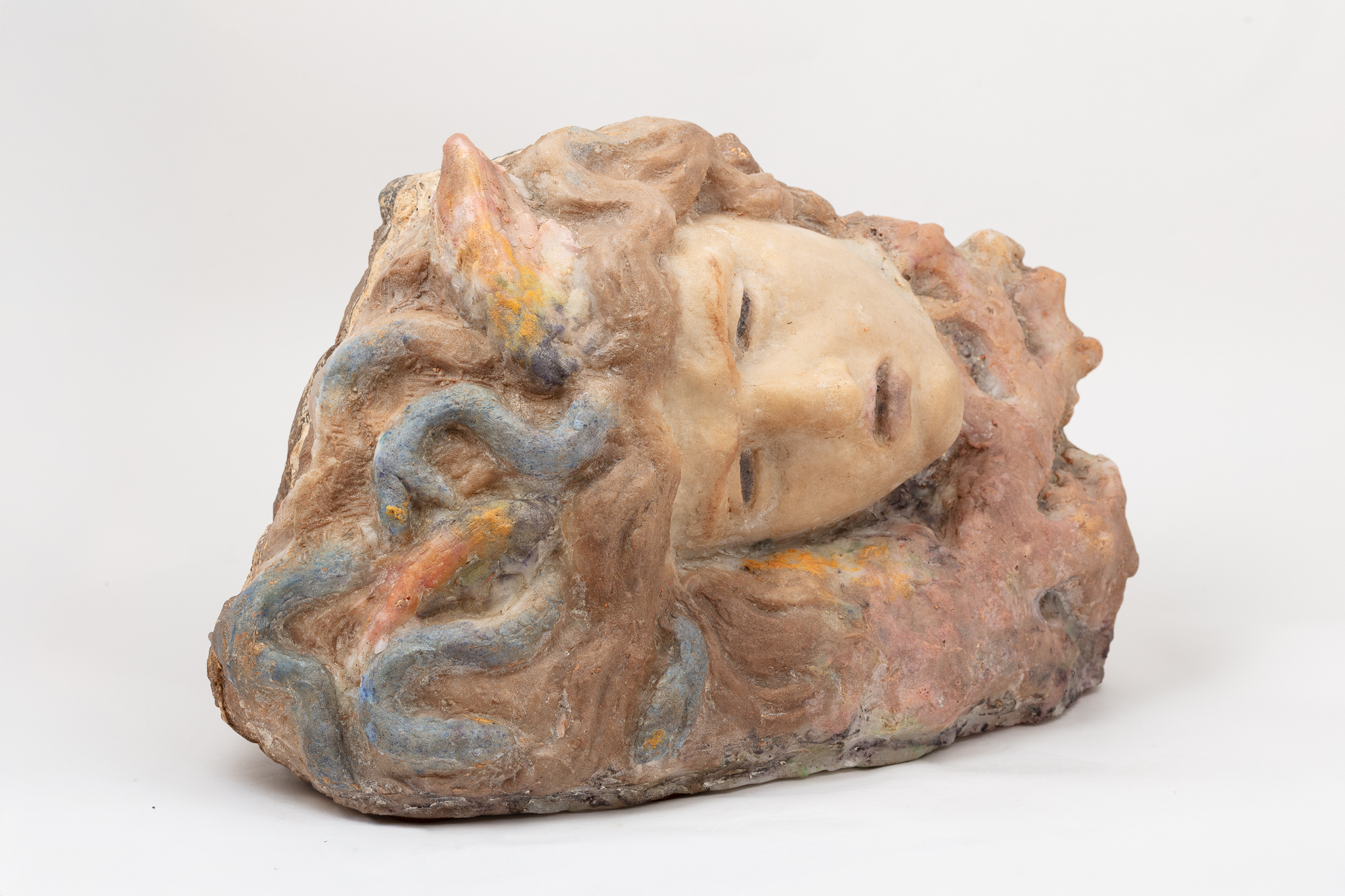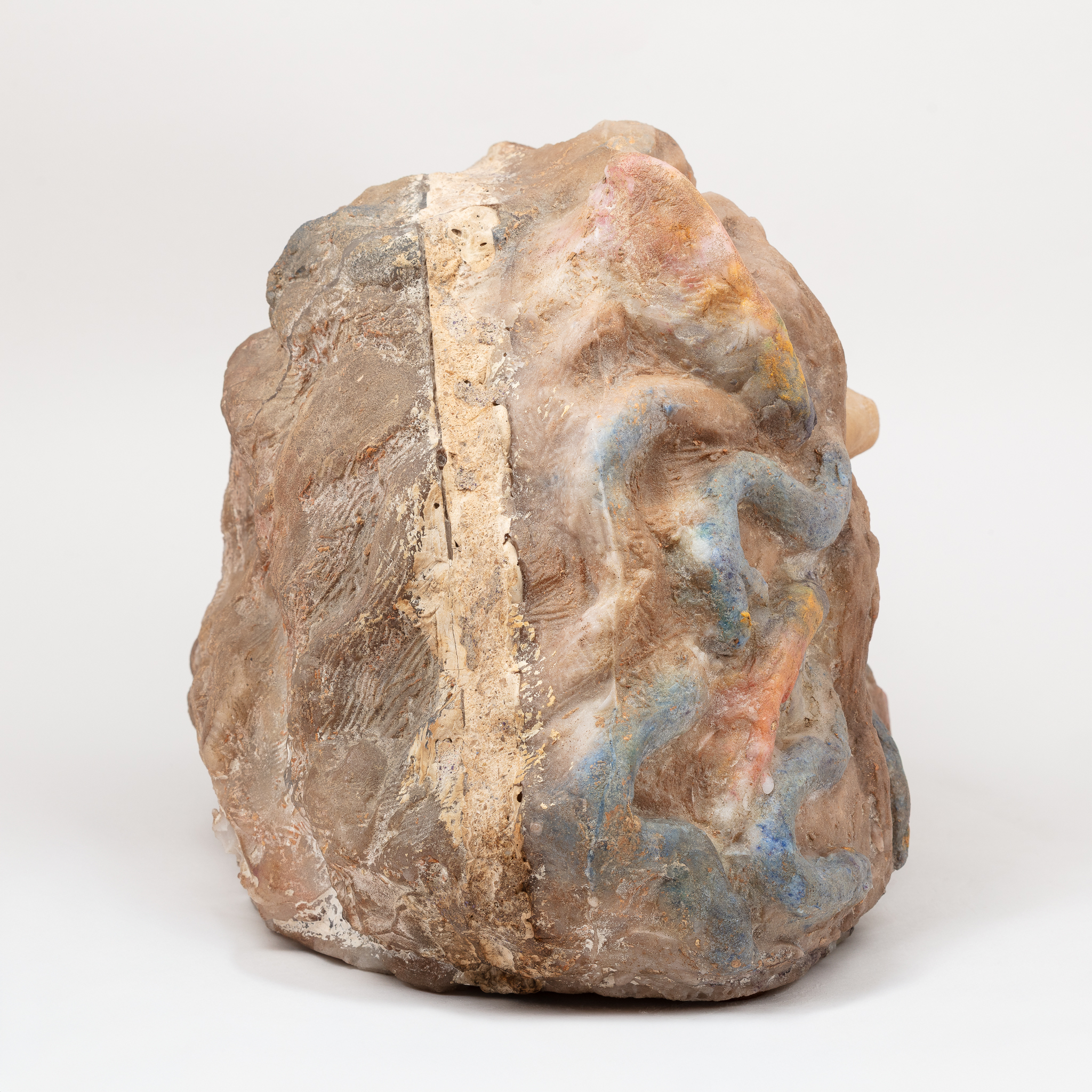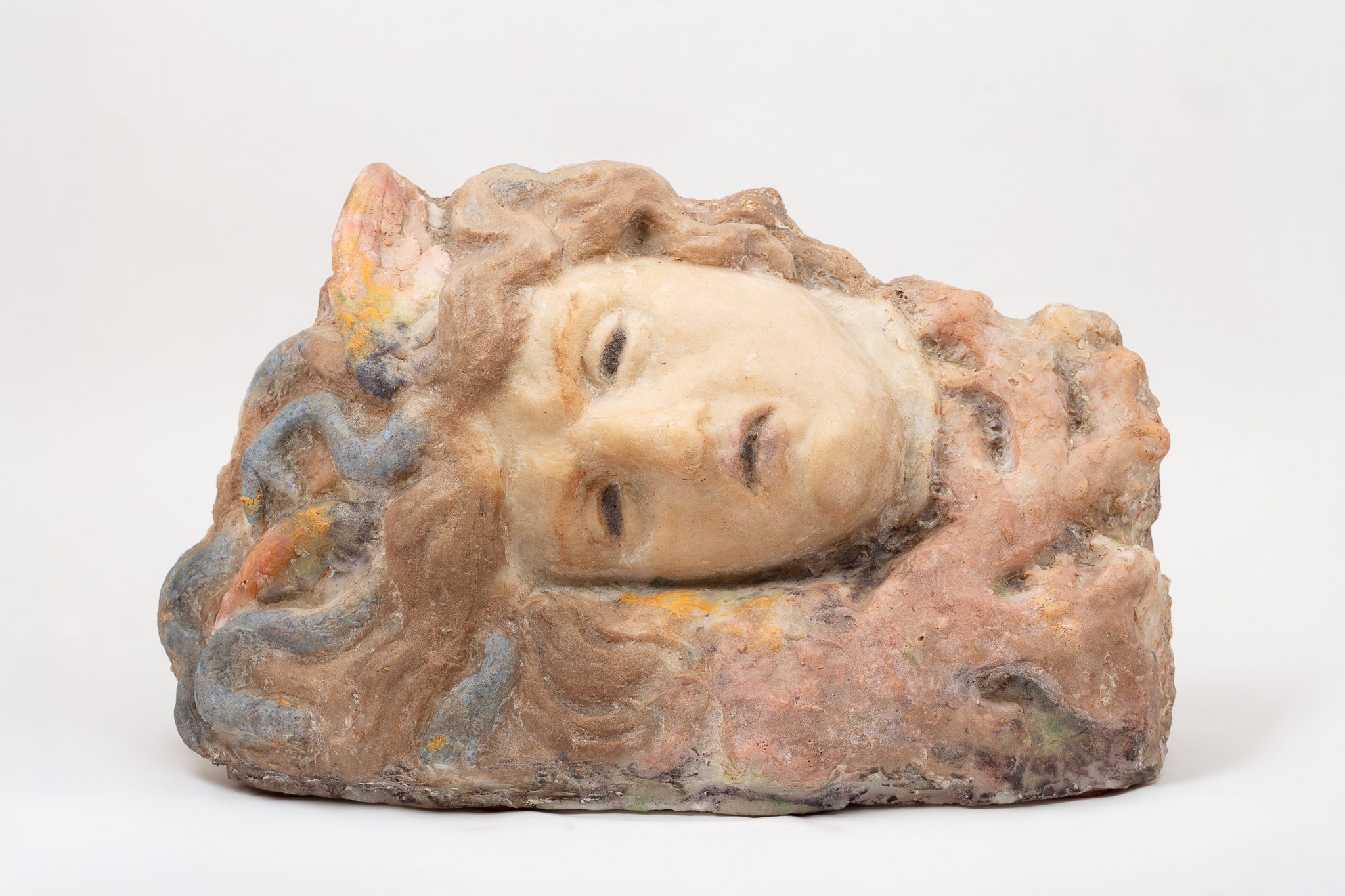 Kop, glaspasta, gepatineerd en met agaat gepolijst