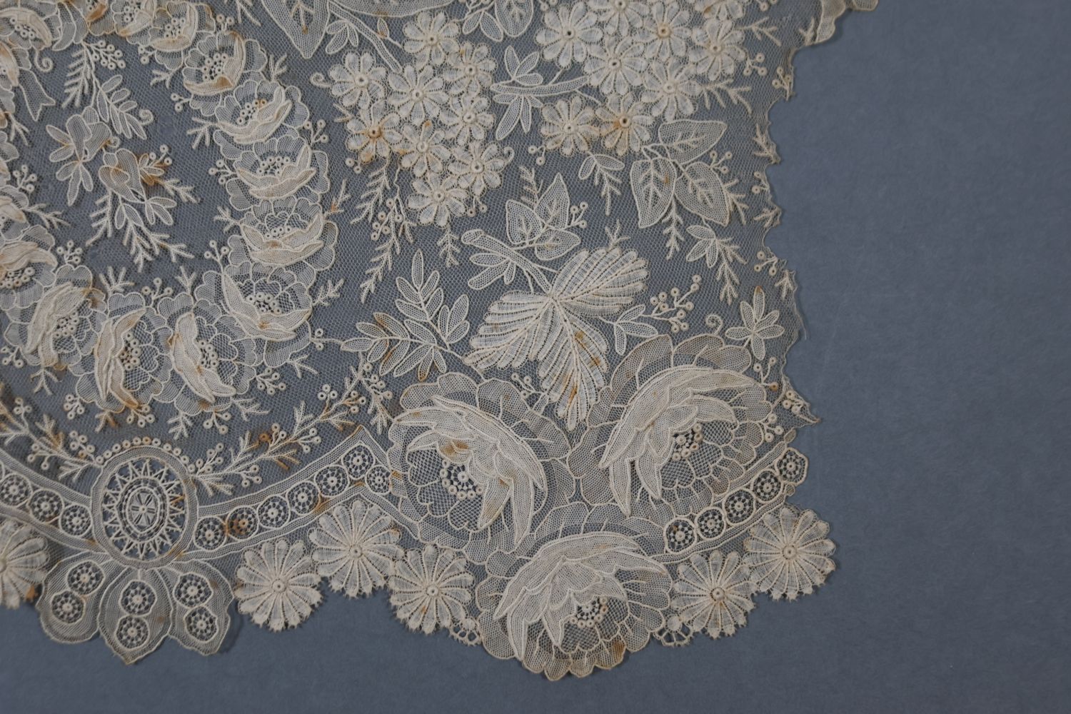 Fragment van een strook, gemengde kant, point d'Angleterre