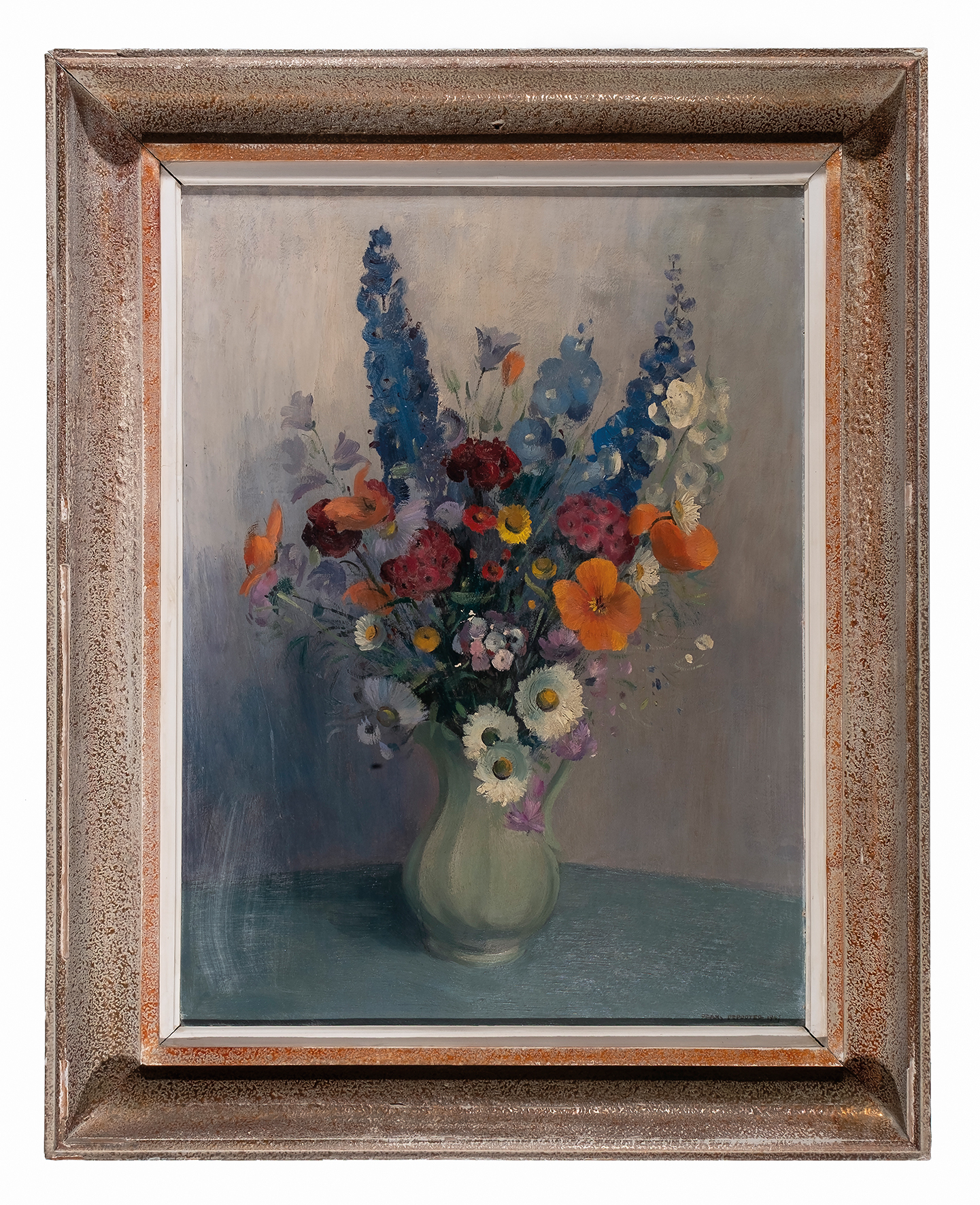Frans Depooter, Bloemen (stilleven met bloemenboeket), olie op houten paneel, 1947.