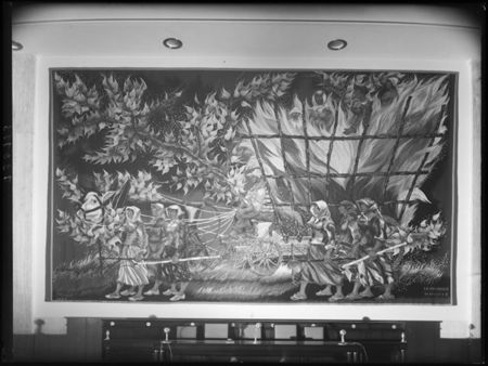 signature, tissé, en bas à gauche: pour R.Somville et E.Dubrunfaut: R.S.- P.E.D."