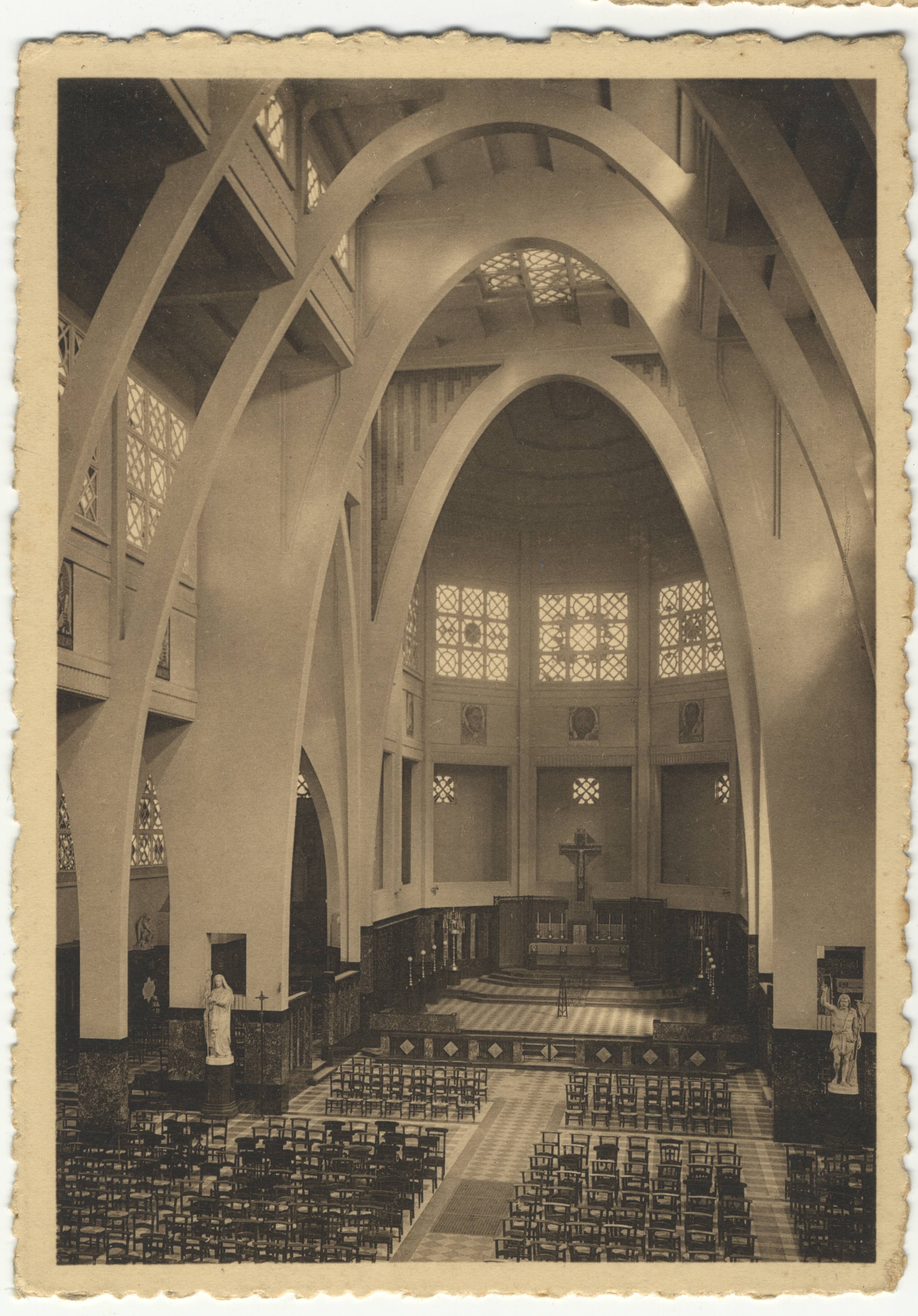 Prentkaart Hoofdbeuk en koor van de Sint-Jan-de-Doperkerk (Sint-Jans-Molenbeek), uitg. Ern. Thill - Nels (Brussel), s.d. [rond 1932].