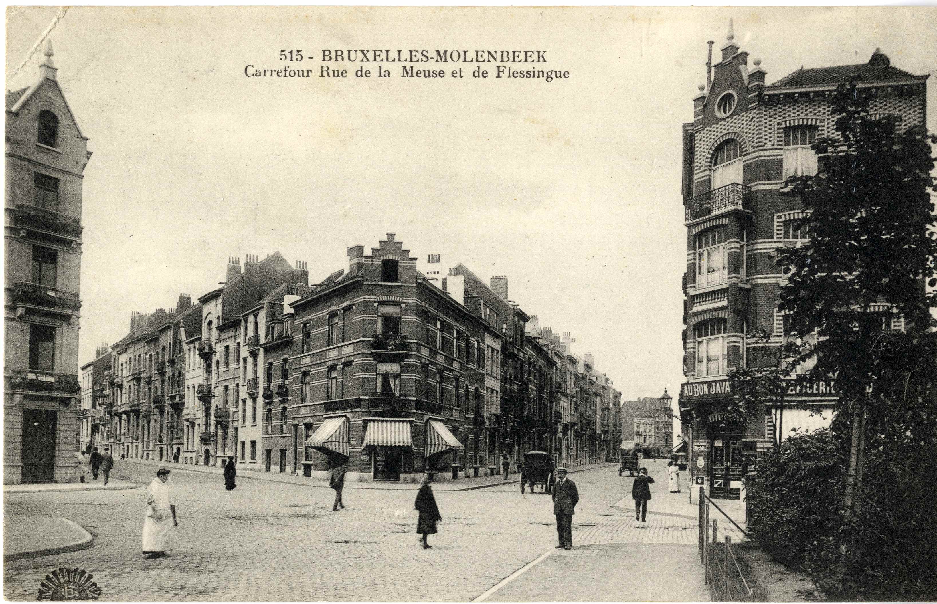 Prentkaart Kruispunt Maasstraat en Vlissingenstraat (Sint-Jans-Molenbeek), uitg. Henri Georges (Brussel), 1921 (?).