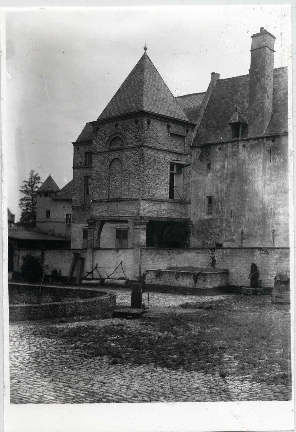 Foto Gedeeltelijk zicht op de kasteelboerderij Karreveld (hoofdgebouw en binnenplaats), anon. fotogr., s.d. [rond 1930].