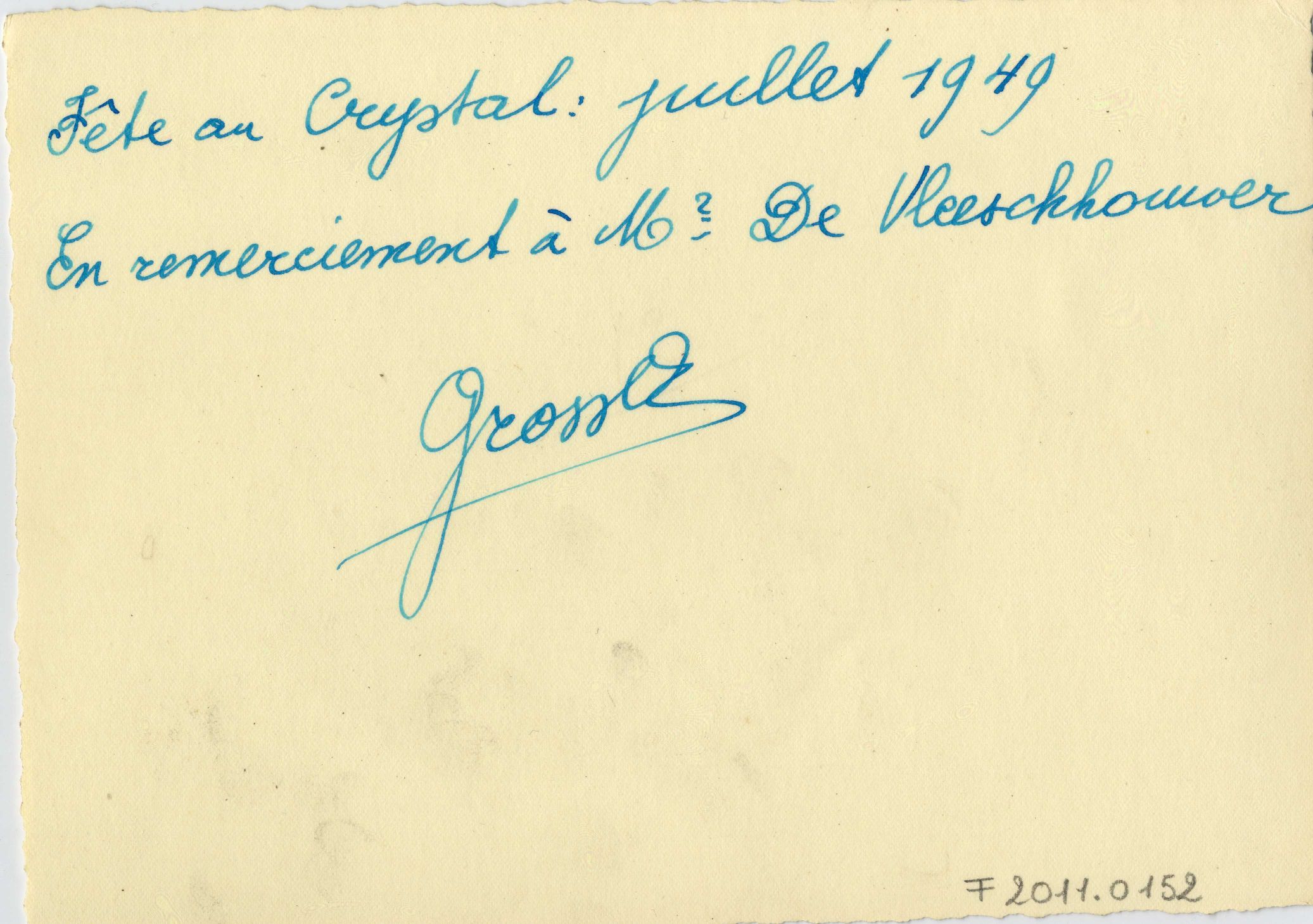 "Fête au Crystal juillet 1949 En remerciement à Mr De Vleeschhauwer