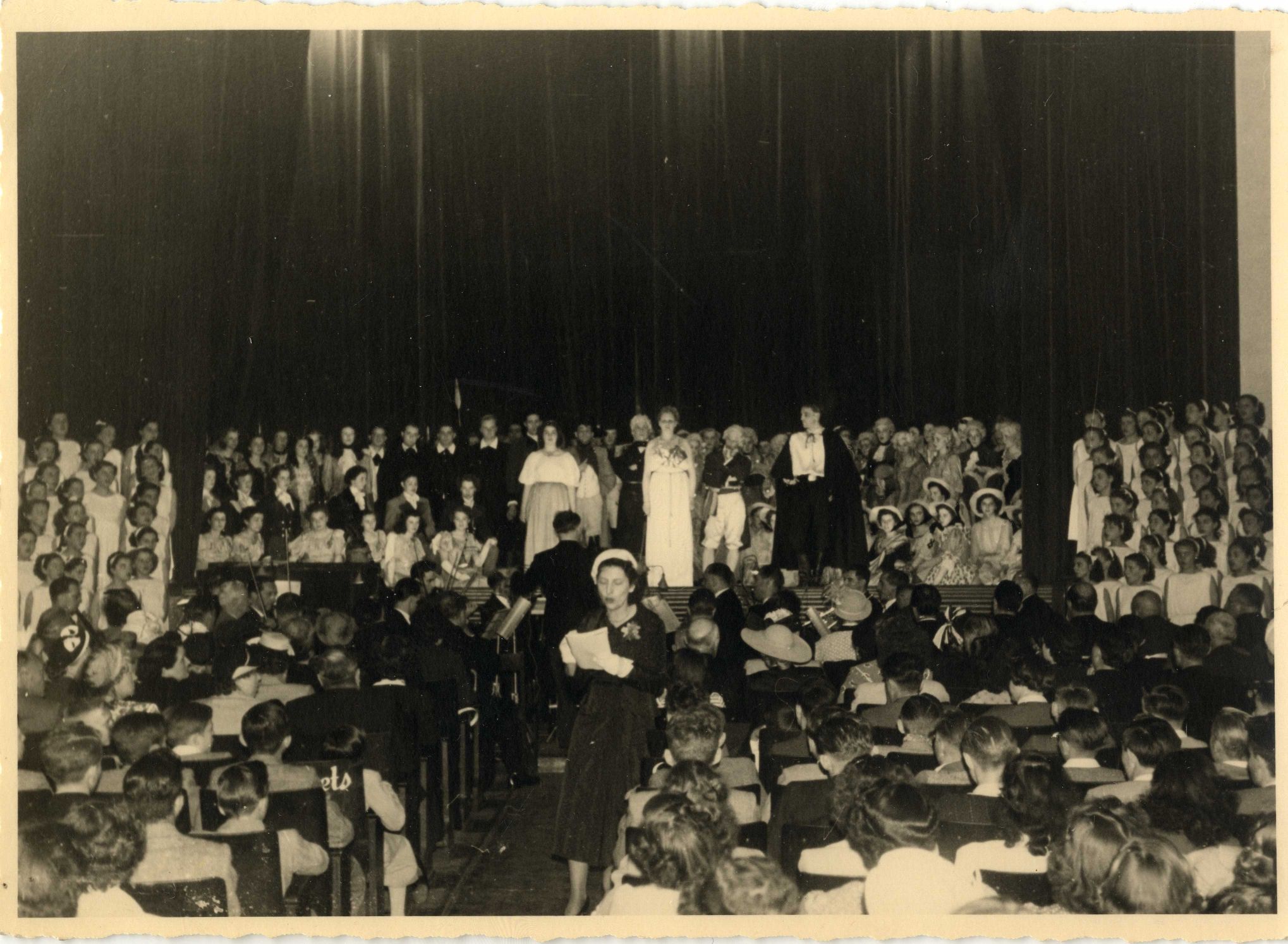 Foto Schooltoneel op het podium van de Crystal bioscoop (Sint-Jans-Molenbeek), fotogr. onbekend, 1950.