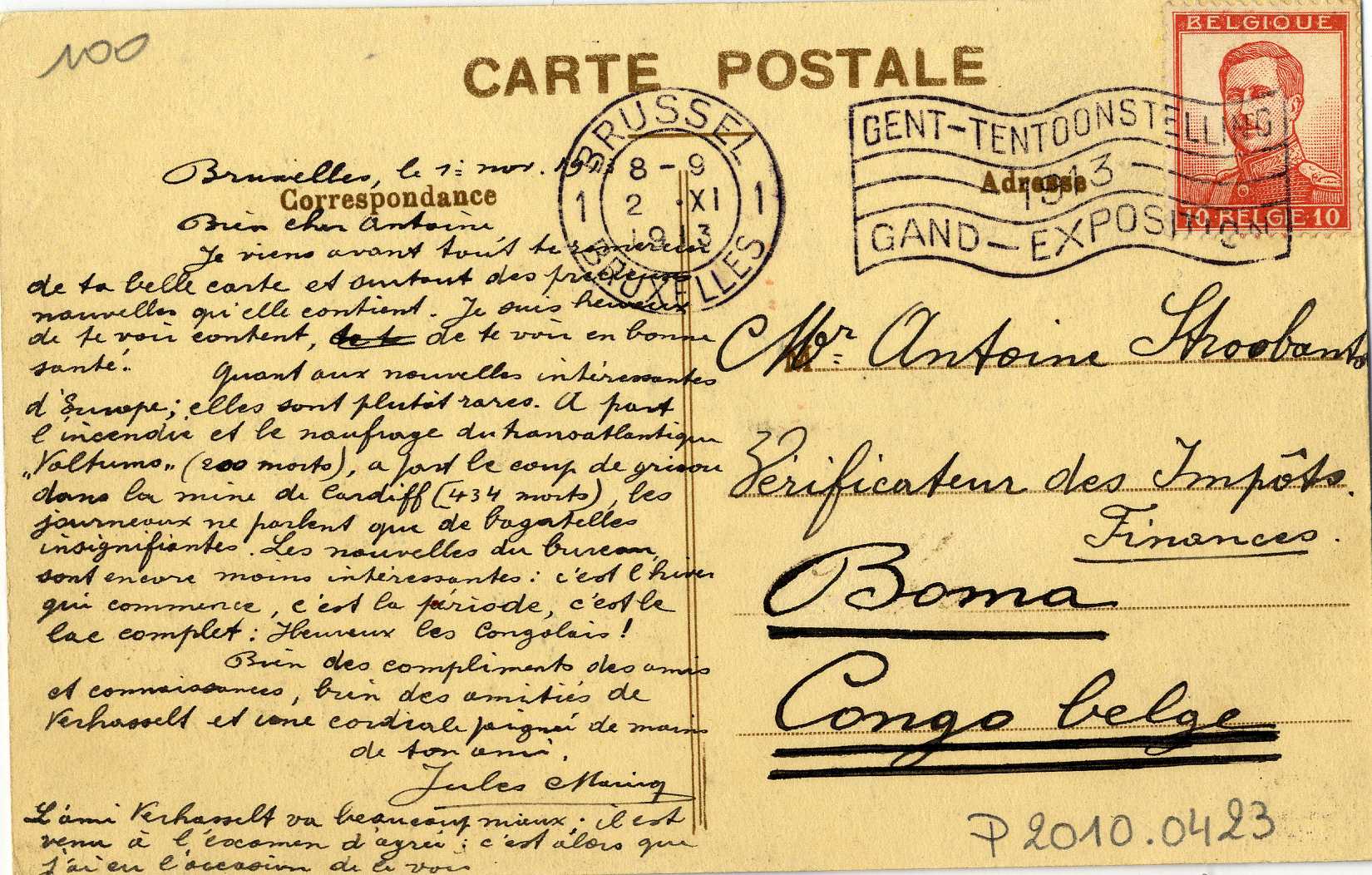 Ingekleurde prentkaart Jubilfeestbrug tussen Brussel en Sint-Jans-Molenbeek, over de sporen van het Zeehavenstation, uitg. Henri Georges (Brussel), 1913.