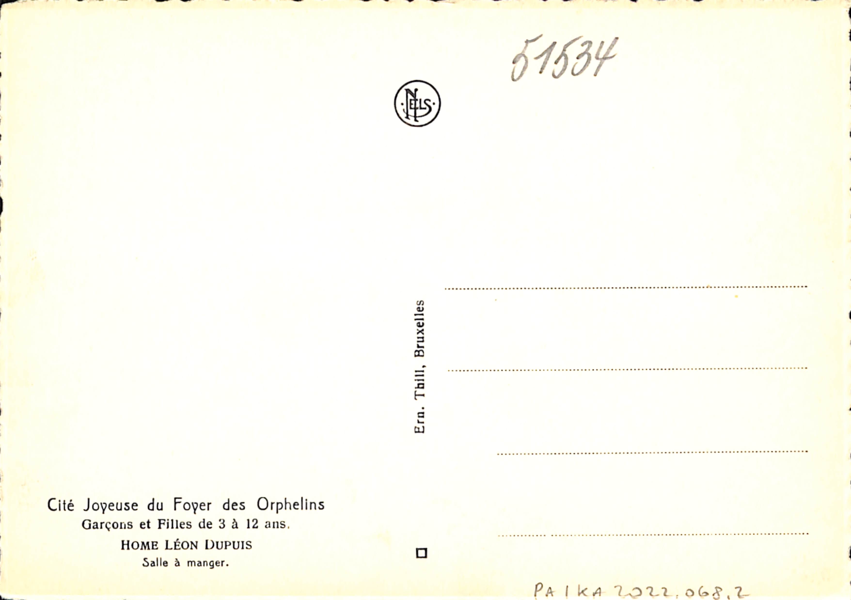 Prentkaart Cité Joyeuse du Foyer des Orphelins, huis Léon Dupuis, ed. Nels - Ern. Thill (Brussel), s.d.