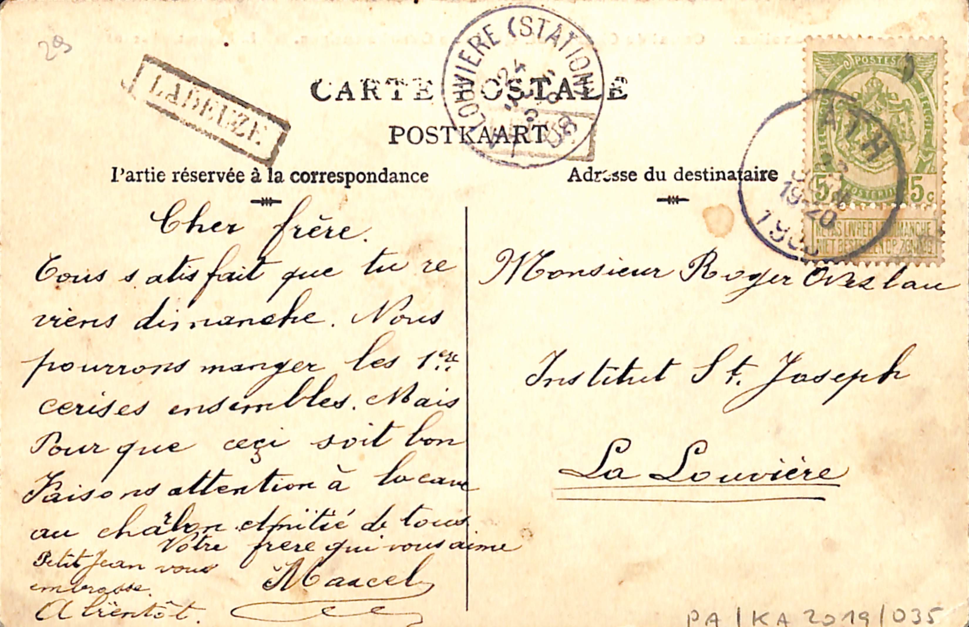 Prentkaart Kanaal van Charleroi, Koolmijnenkaai en handel in graan-, kolen en zand F. De Knop (Sint-Jans-Molenbeek), uitg. L. Lagaert (Brussel), 1908.