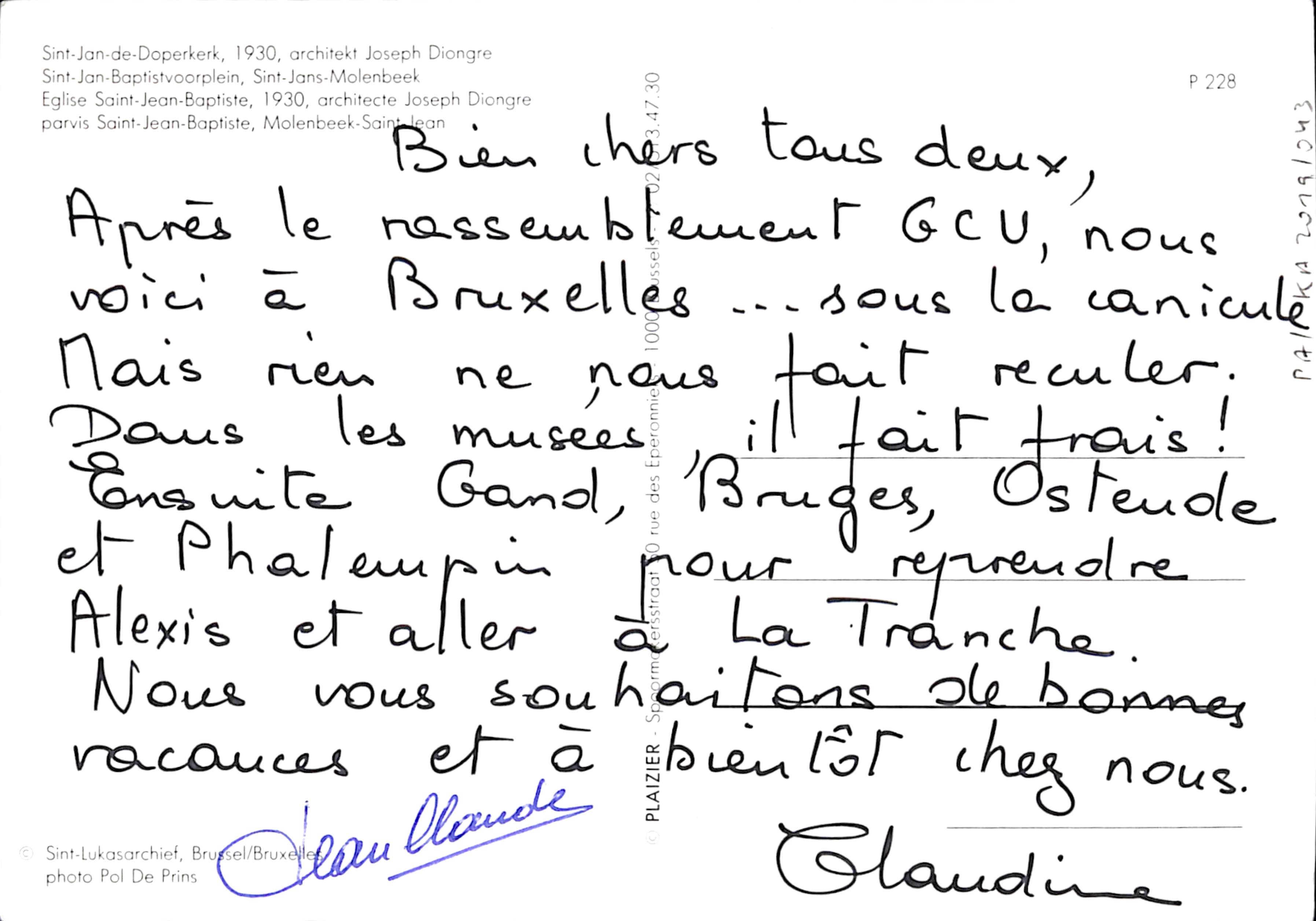 Prentkaart Sint-Jan-de-Doperkerk (Sint-Jans-Molenbeek), uitg. Plaizier - Sint-Lukasarchief (Brussel), s.d. [jaren 1970-1980?].