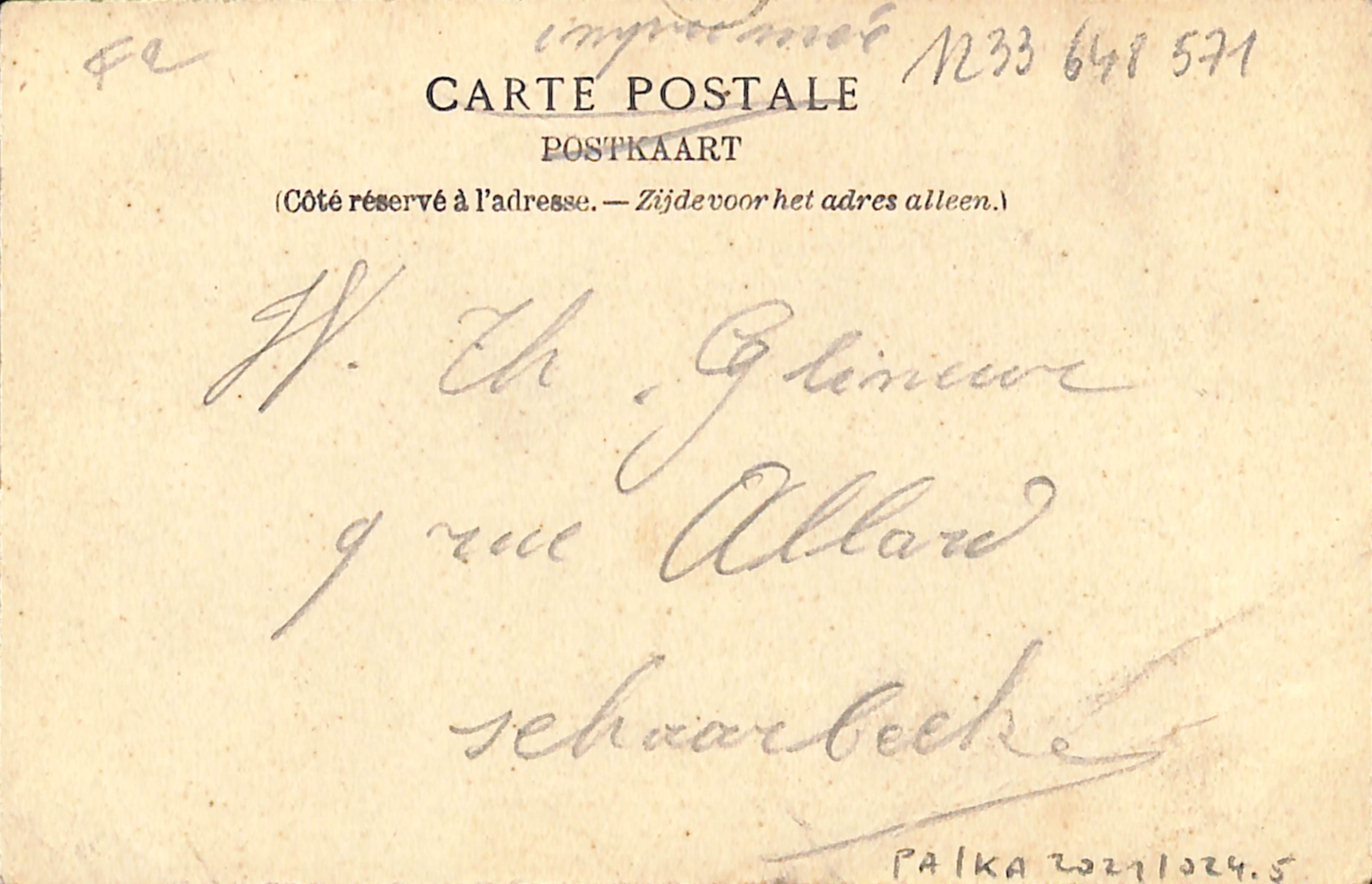 Prentkaart Piersstraat, uithangbord “Au vieux porc” (Sint-Jans-Molenbeek), uitg. De Leenaer (Koekelberg), s.d. [ca. 1908].