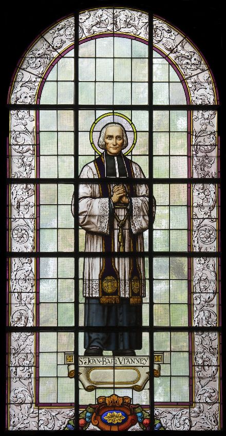 Glas-in-loodraam van Sint-Jean-Marie Baptiste Vianney, pastoor van Ars